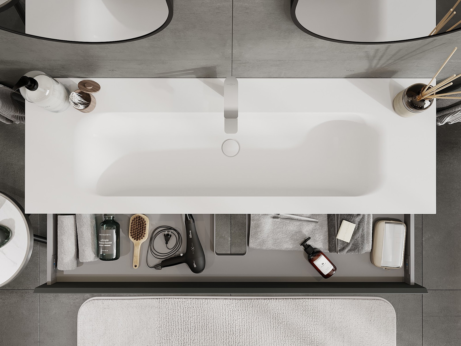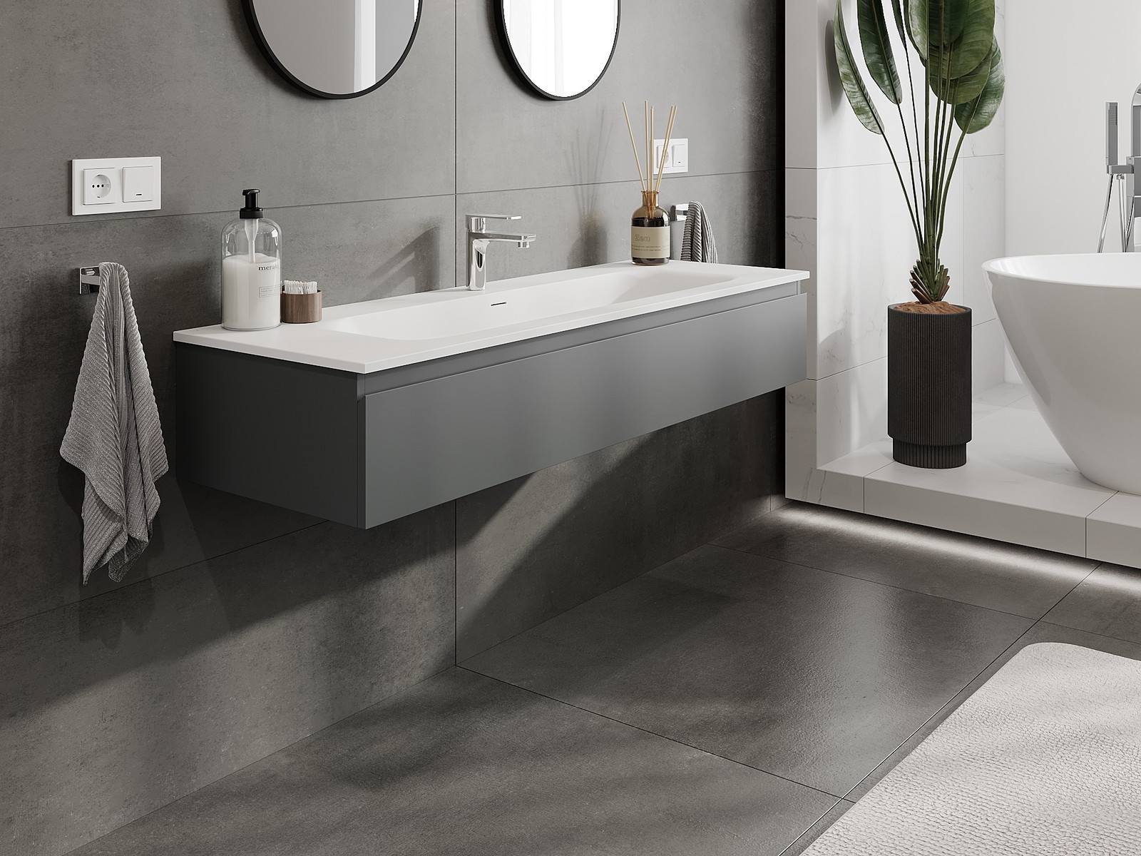 Mexen Orio vonios spintelė 140 cm su kriaukle Vela, 1 stalčius, matinė grafito/balta - 91A10-14023-1-BF66-W23M01