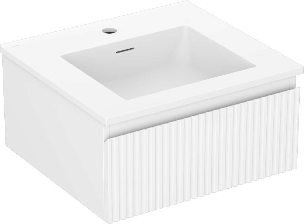 Mexen Rivel vonios kambario spintelė 50 cm su Otis kriaukle, 1 stalčius, raižytas, balta matinė - 91A20-05023-1-BF01-W18M01