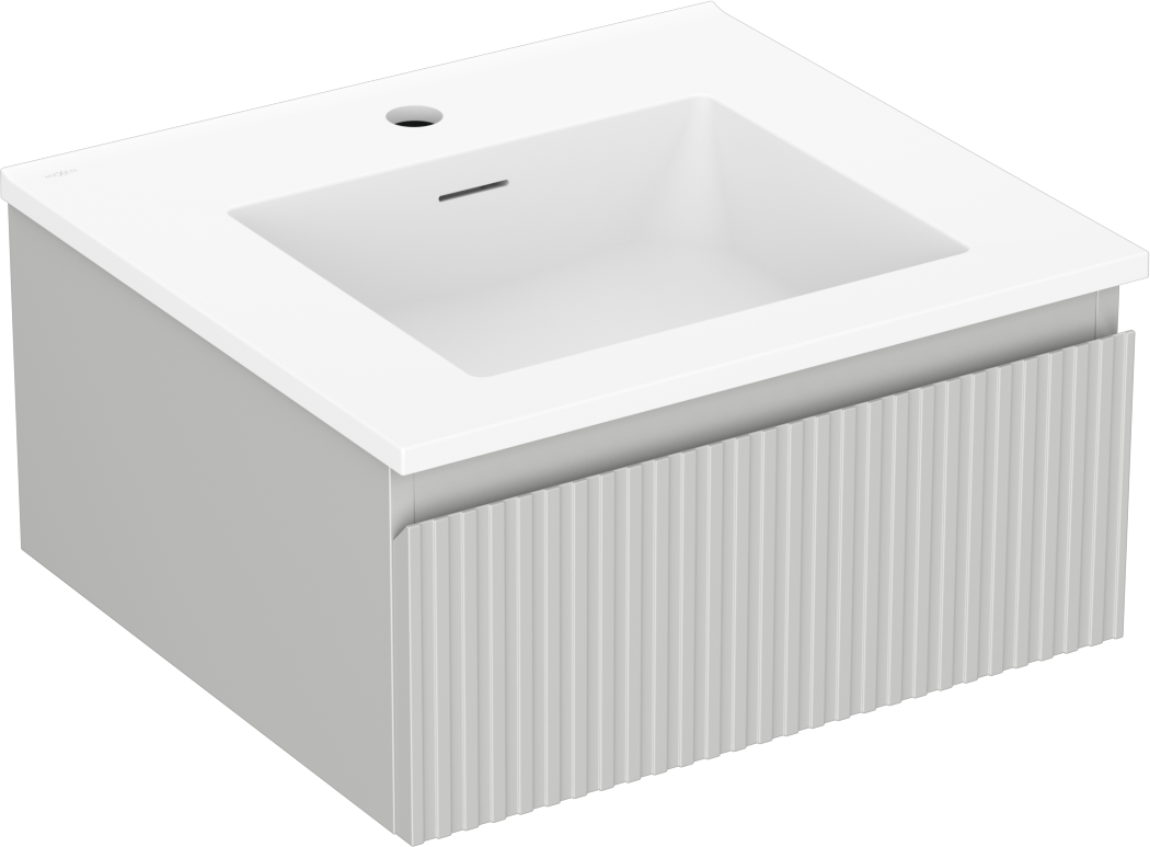 Mexen Rivel vonios spintelė 50 cm su kriaukle Otis, 1 stalčius, grioveliai, pilka matinė/balta matinė