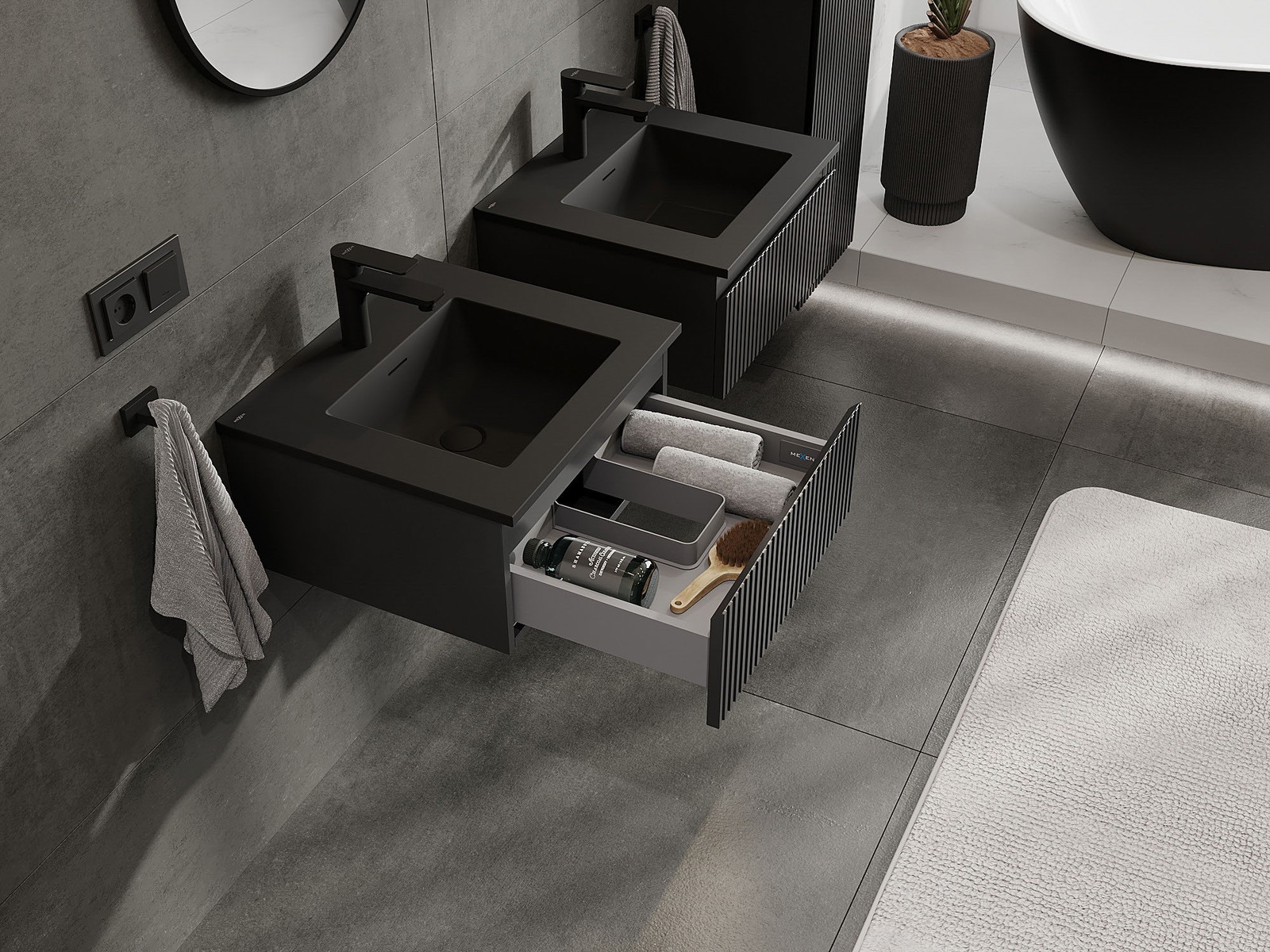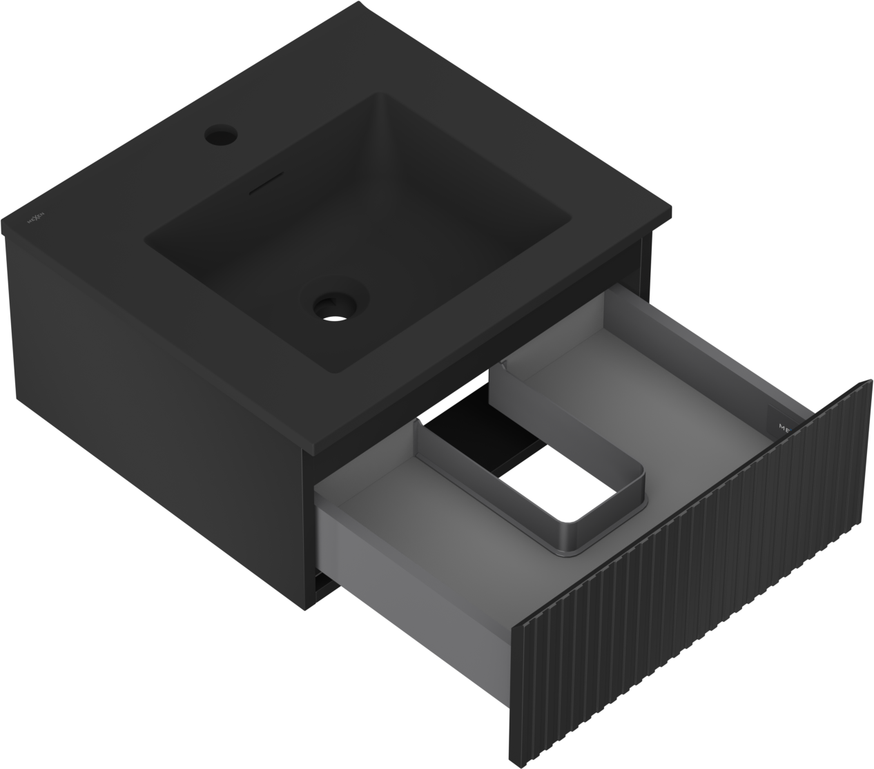 Mexen Rivel vonios spintelė 50 cm su Otis praustuvu, 1 stalčius, grioveliais, juoda matinė - 91A20-05023-1-BF71-W18M71