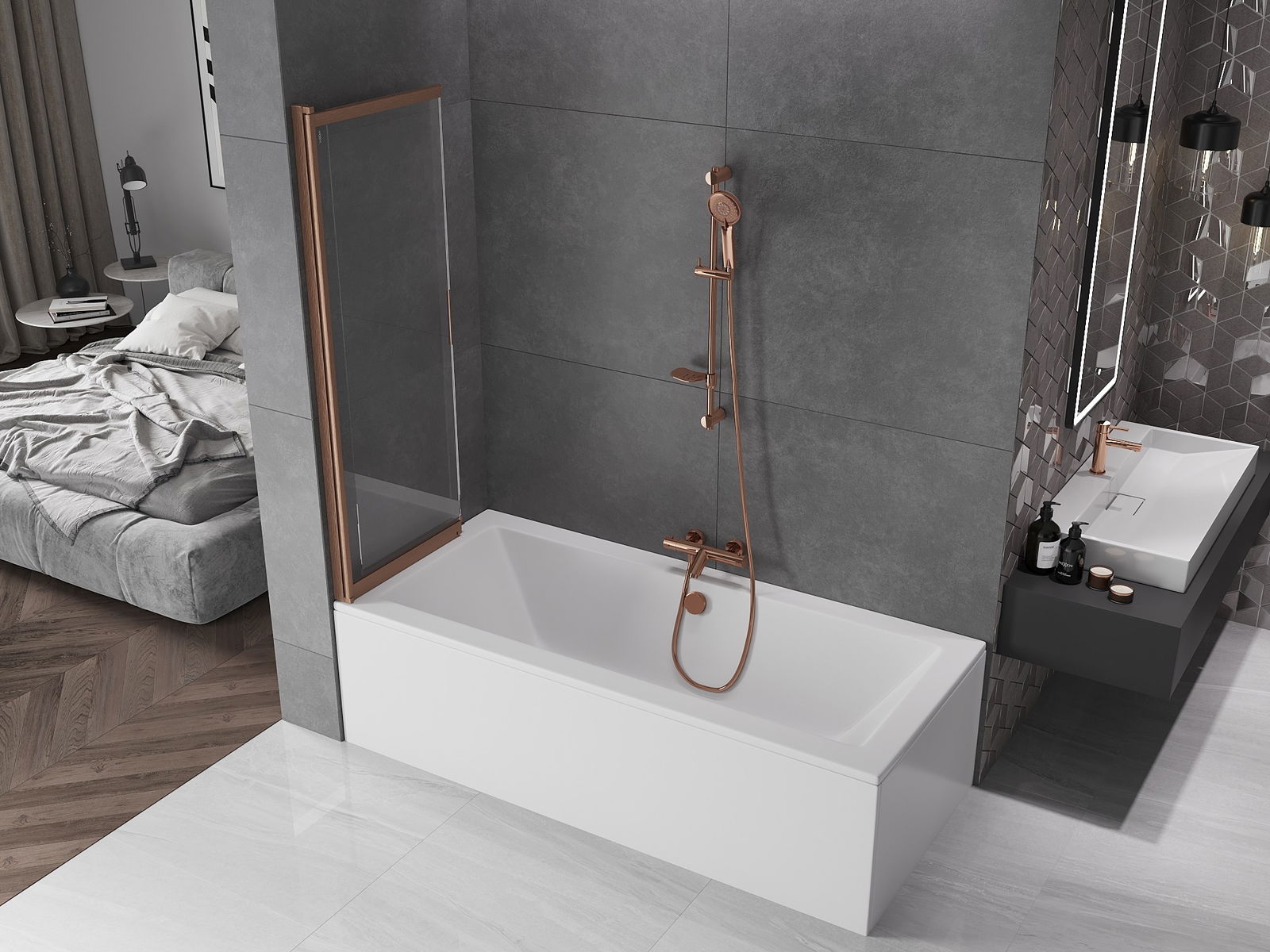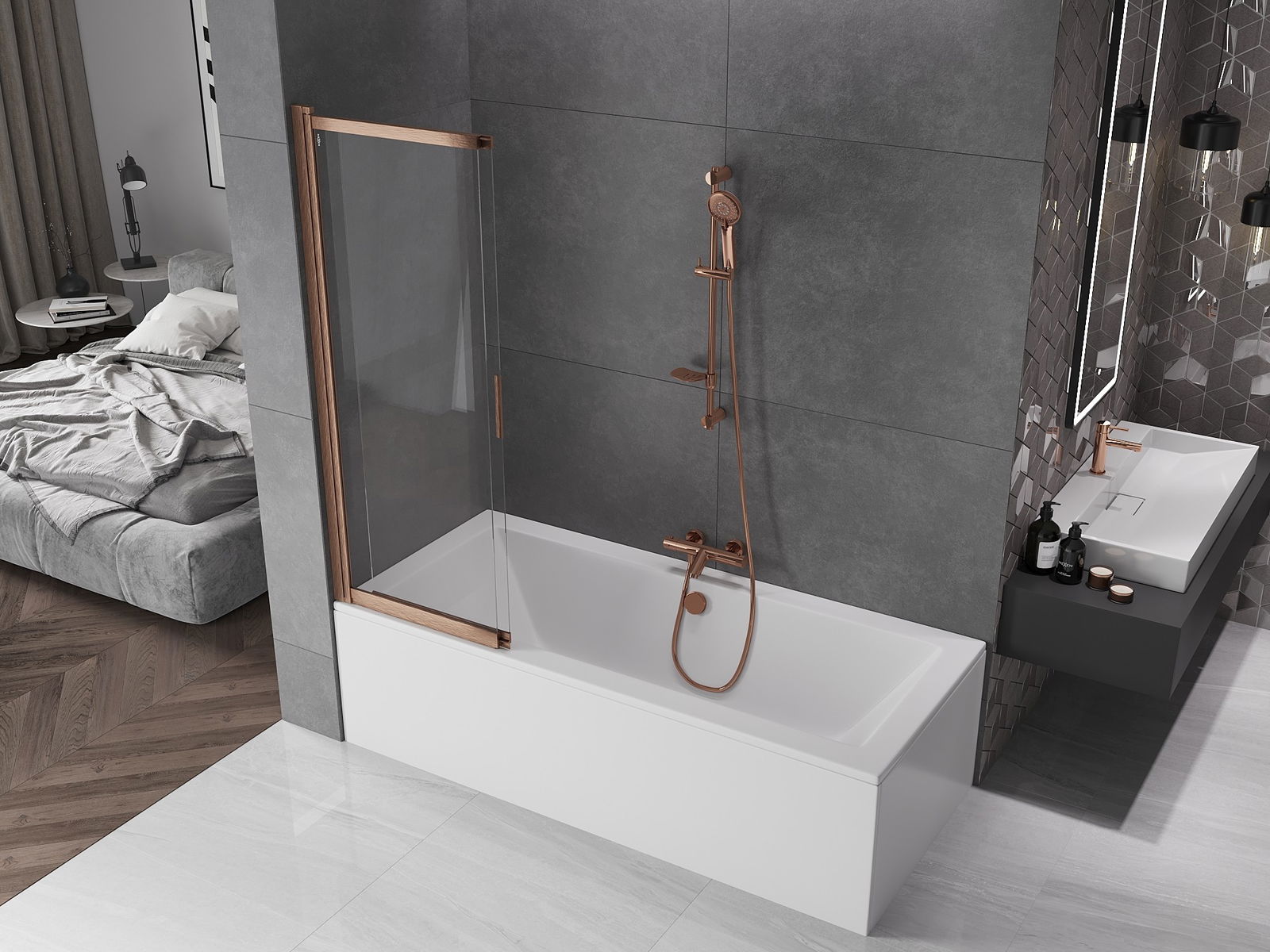 Dėl universalios tvirtinimo sistemos, ekraną galima montuoti tiek dešinėje, tiek kairėje pusėje, priklausomai nuo poreikių. Tokiu būdu galite lengvai suprojektuoti dušą, pritaikytą vonios kambario erdvei.