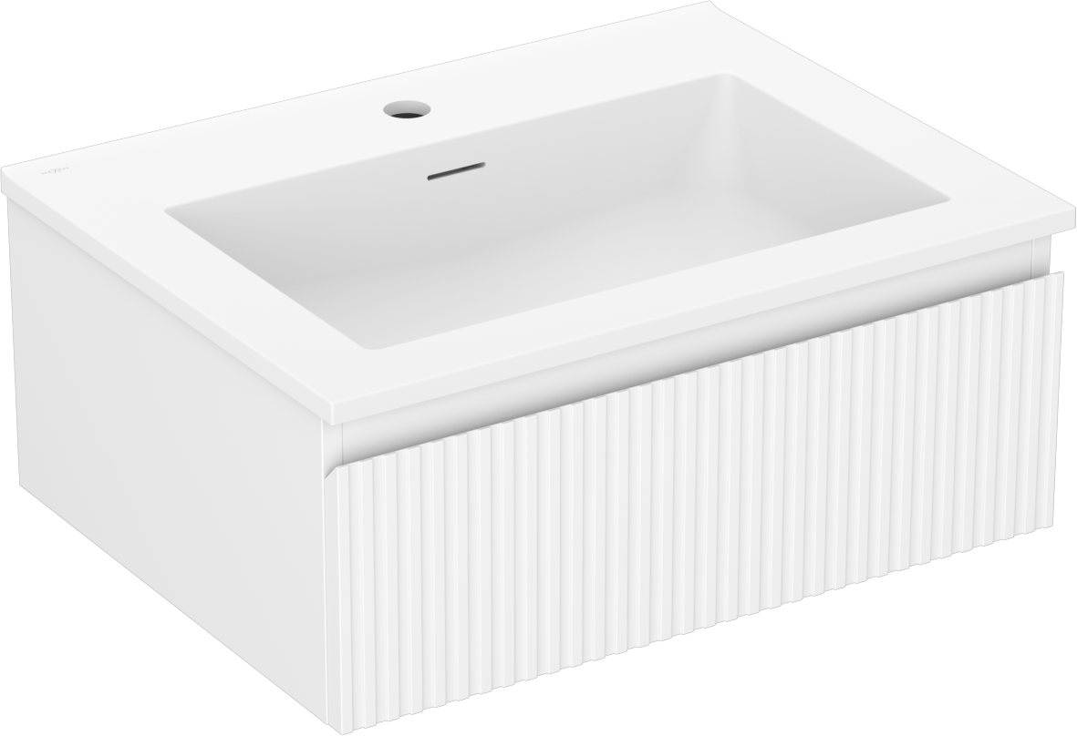 Mexen Rivel vonios kambario spintelė 60 cm su kriaukle Otis, 1 stalčius, rifliuota, balta matinė - 91A20-06023-1-BF01-W18M01