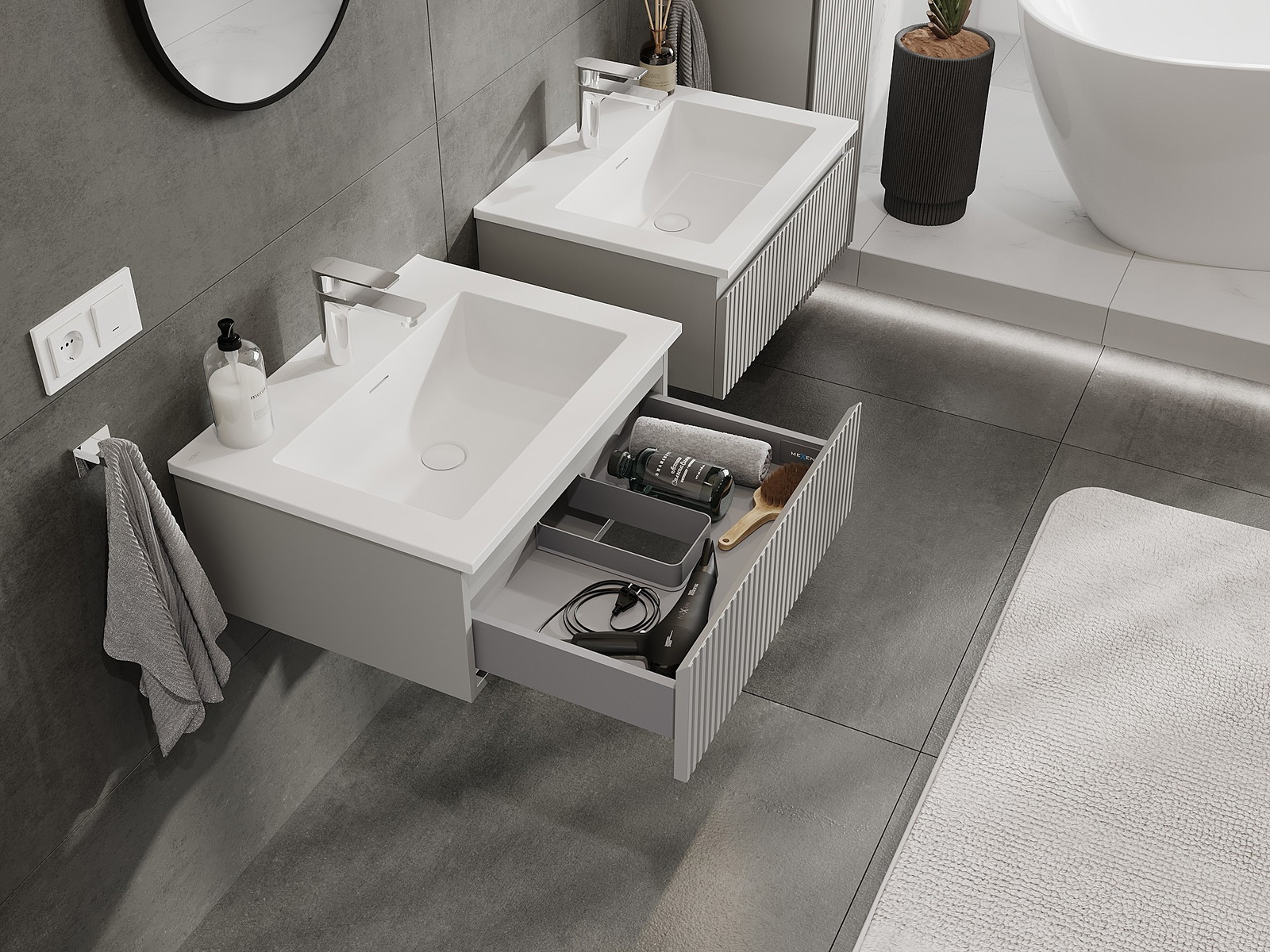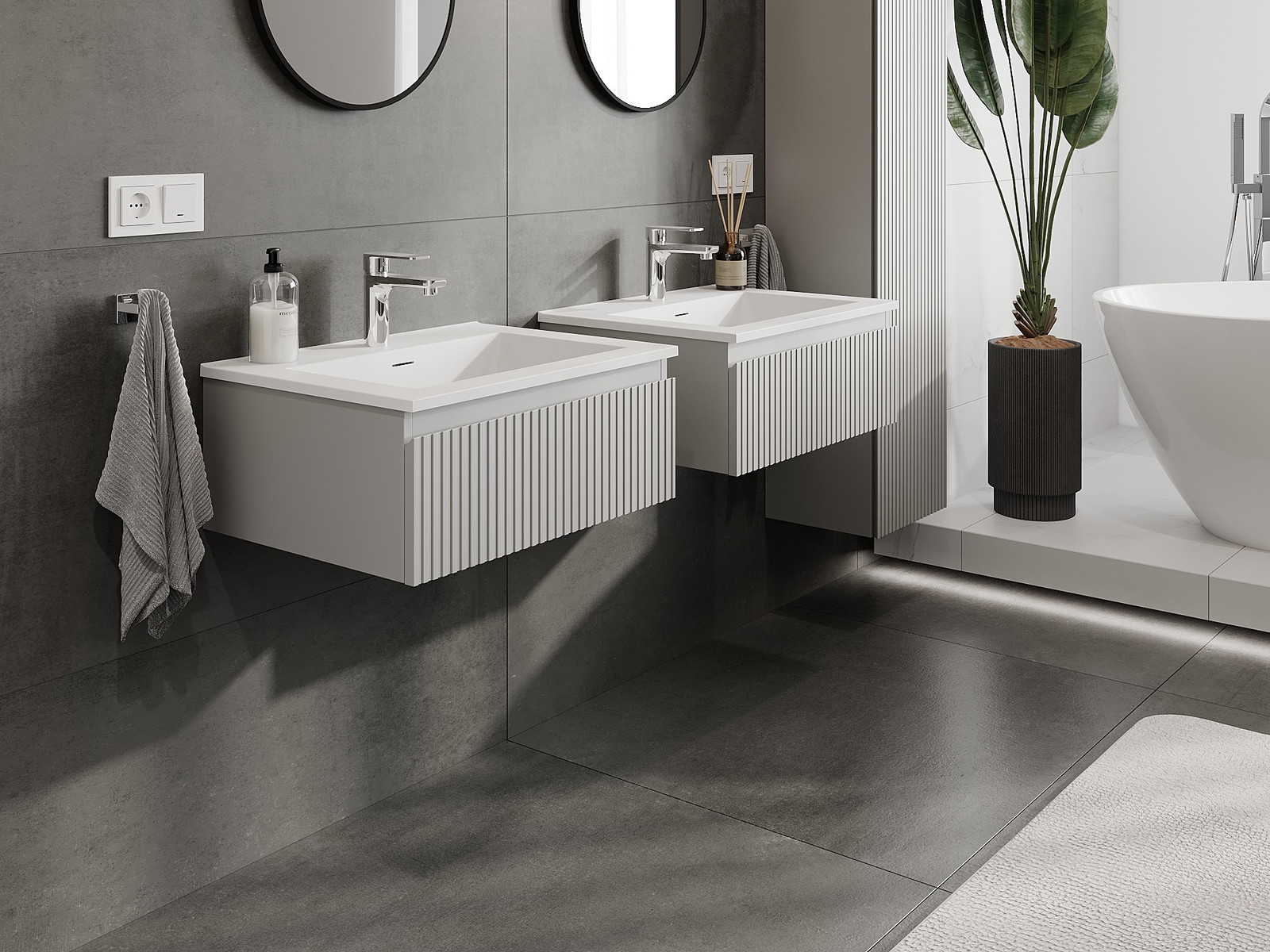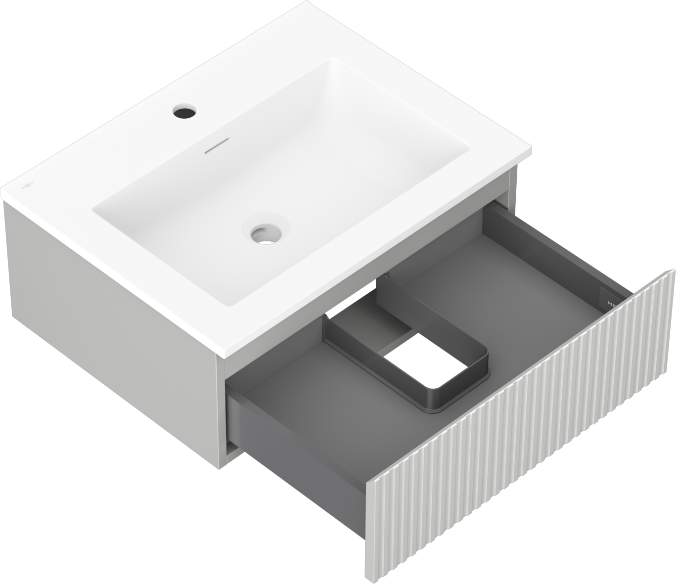 Mexen Rivel vonios spintelė 60 cm su Otis praustuve, 1 stalčius, grioveliai, pilka matinė/balta matinė
