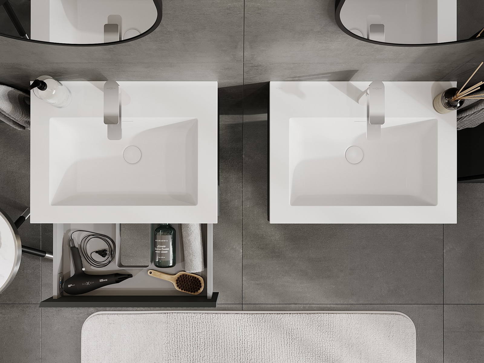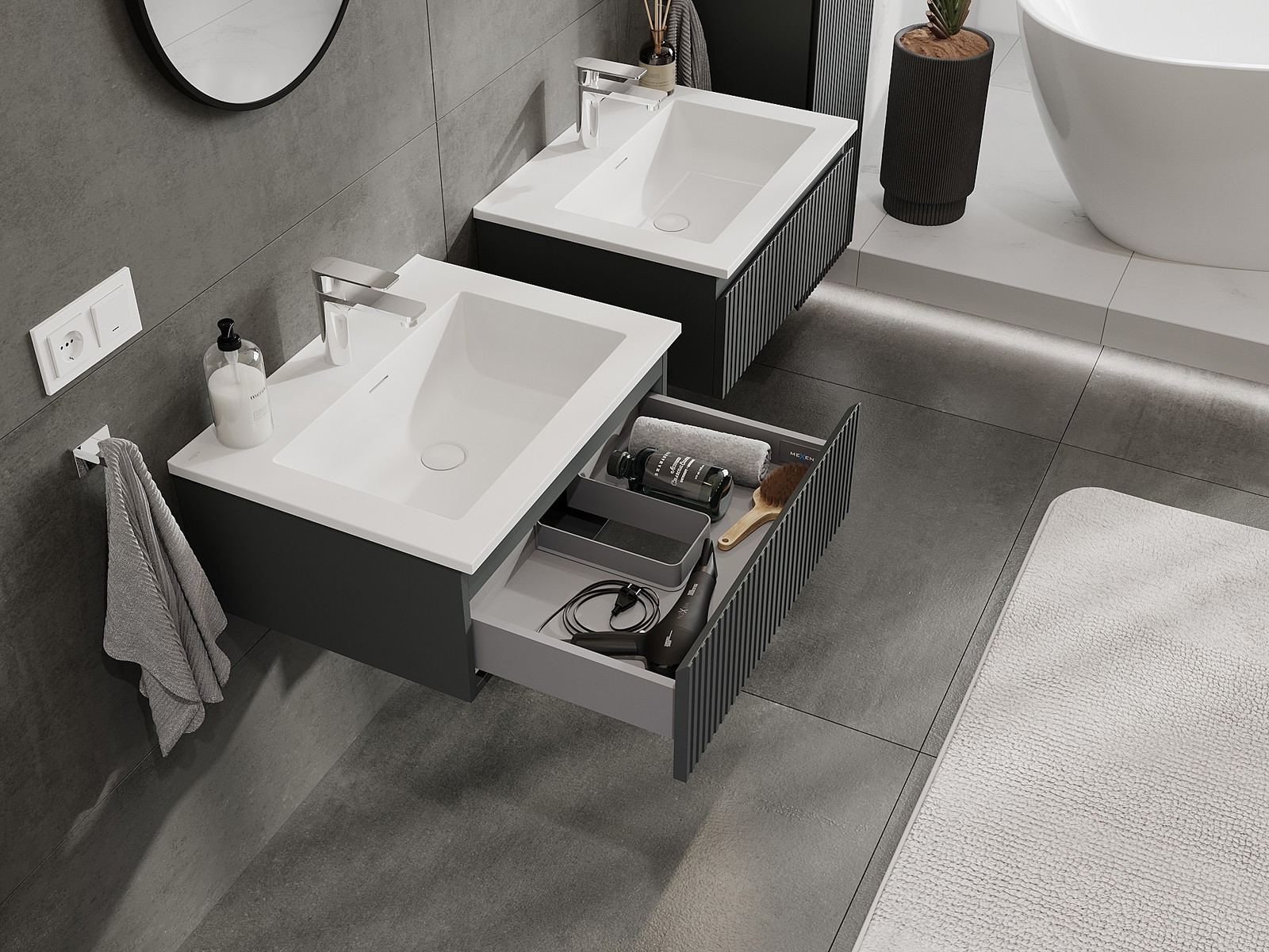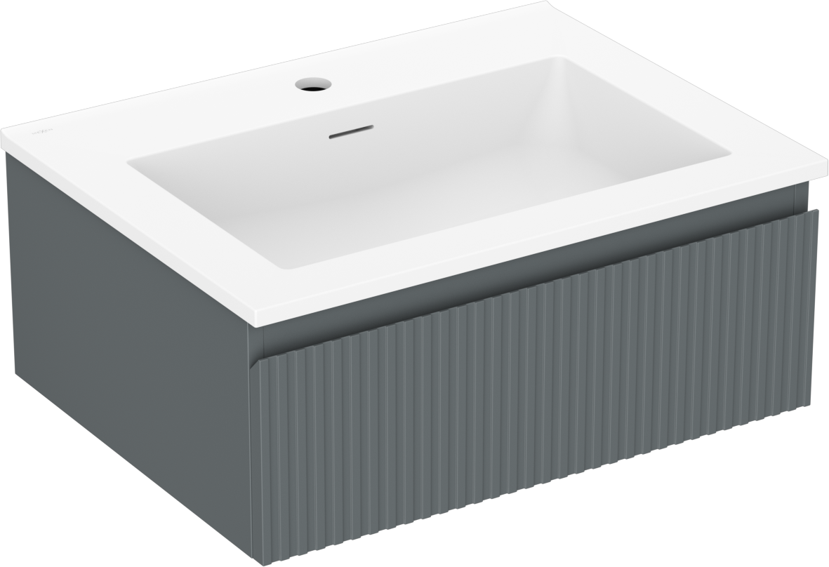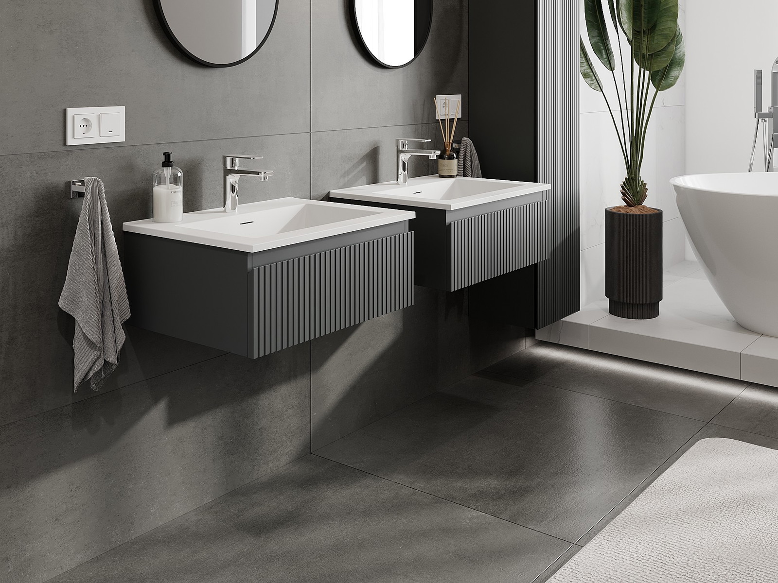 Mexen Rivel vonios spintelė 60 cm su Otis praustuvu, 1 stalčius, rifliuota, matinė grafito/balta - 91A20-06023-1-BF66-W18M01