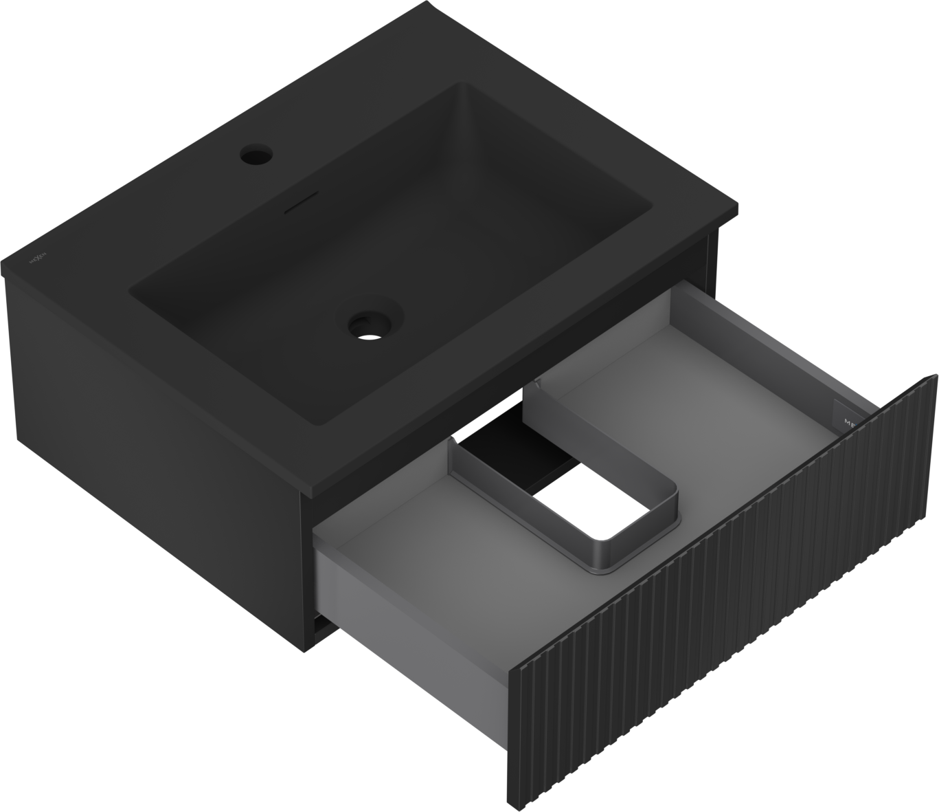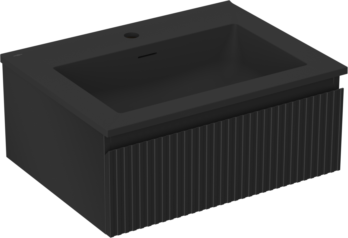 Mexen Rivel vonios spintelė 60 cm su praustuvu Otis, 1 stalčius, grioveliuotas, juodas matinis - 91A20-06023-1-BF71-W18M71