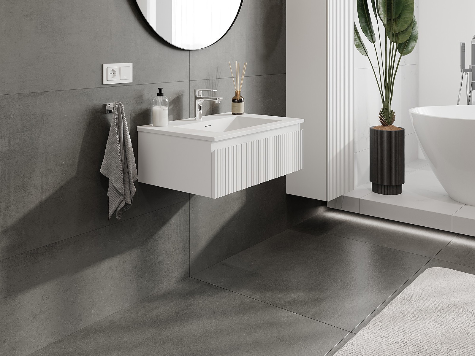 Mūsų moduliniai vonios baldai gali būti derinami tarpusavyje įvairiomis spalvų konfigūracijomis, leidžiant visiškai pritaikyti pagal asmeninius poreikius. Galima pasirinkti tiek atskirų elementų išvaizdą, tiek funkcijas, kas leidžia baldus pritaikyti pagal savo stiliaus ir naudojimo preferencijas.