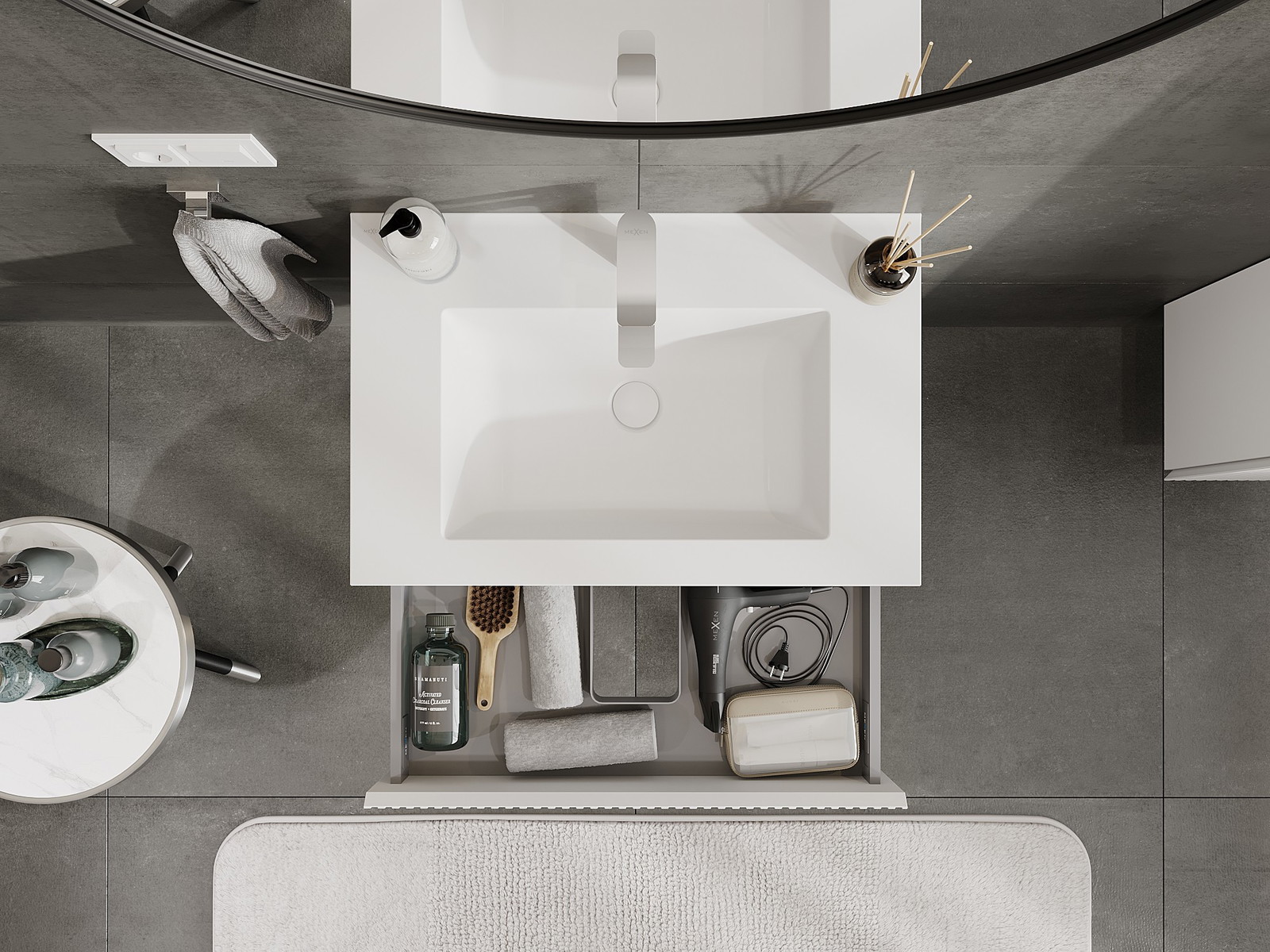 Mexen Rivel vonios spintelė 70 cm su praustuvu Otis, 1 stalčius, briaunuota, balta matinė - 91A20-07023-1-BF01-W18M01