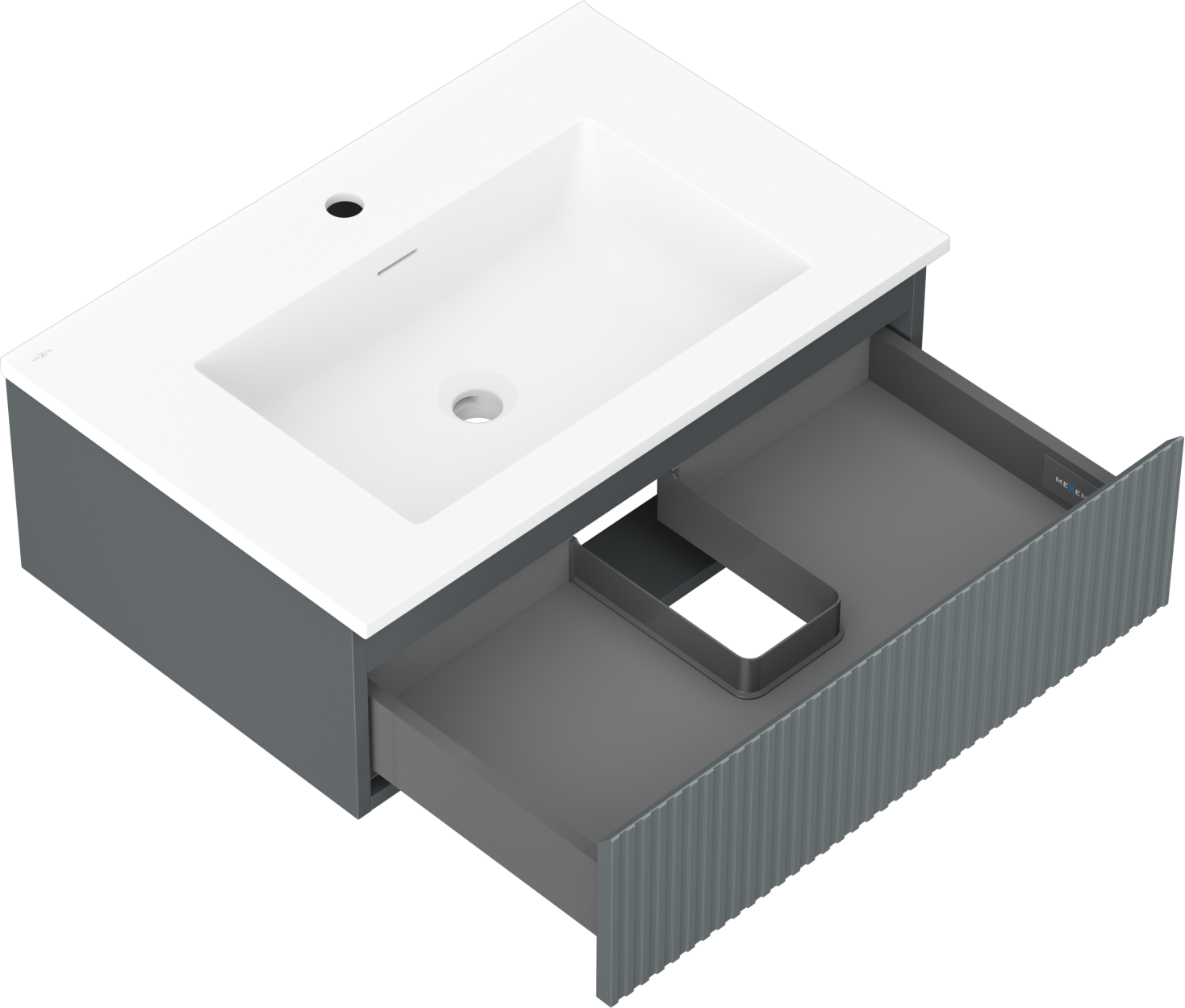 Mexen Rivel vonios kambario spintelė 70 cm su praustuvu Otis, 1 stalčius, gofruotas, grafito matinė / balta matinė