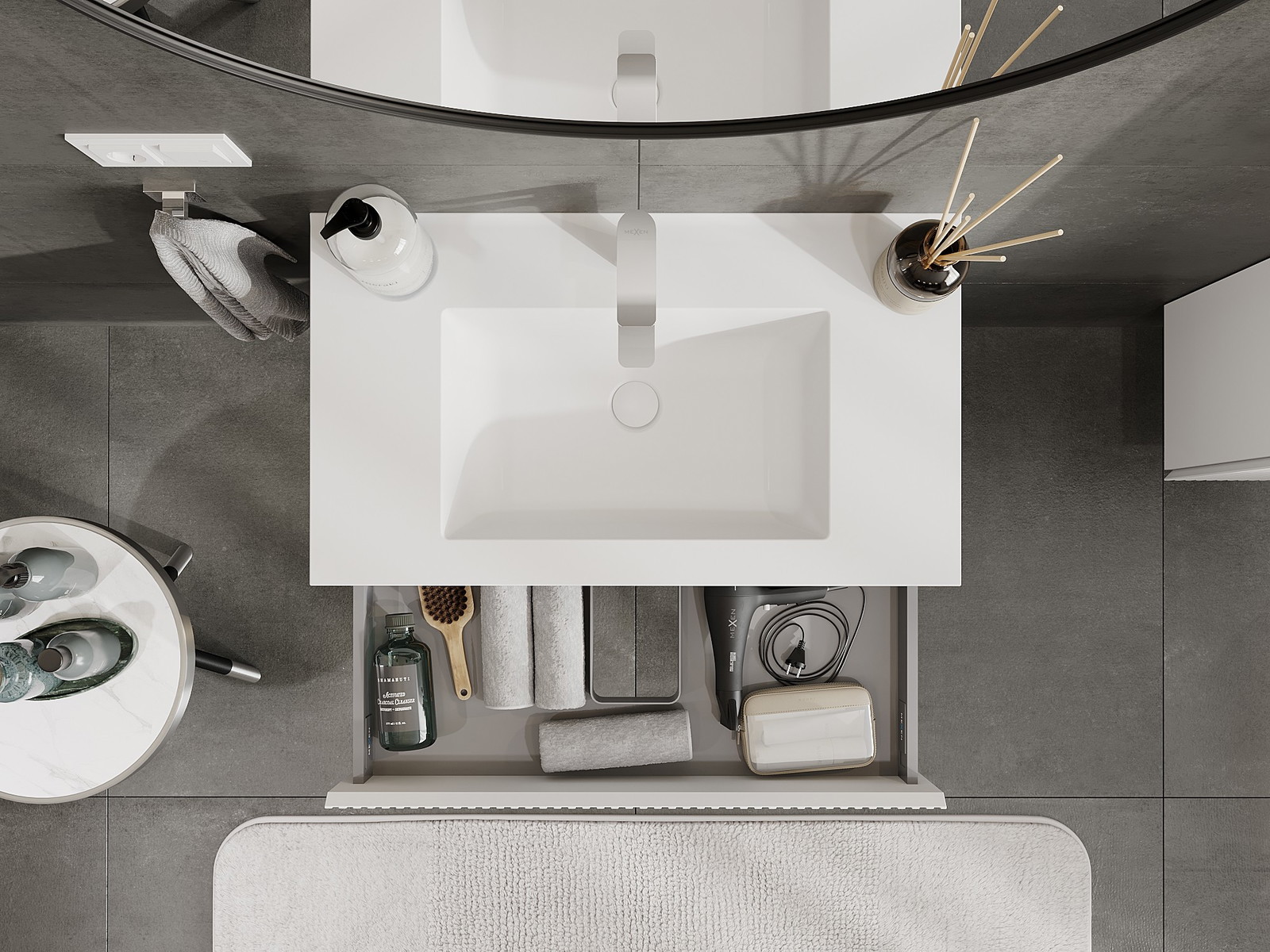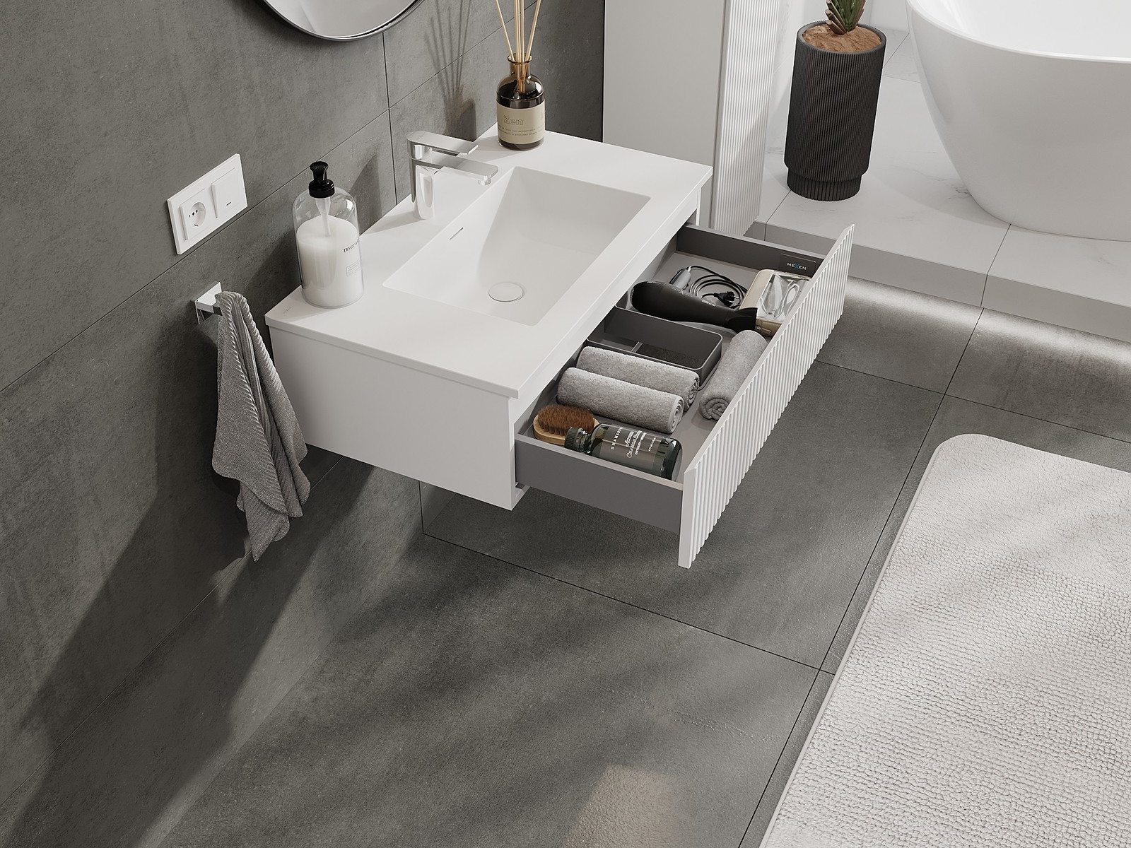 Mexen Rivel vonios spintelė 80 cm su kriaukle Otis, 1 stalčius, grioveliais, matinė balta - 91A20-08023-1-BF01-W18M01