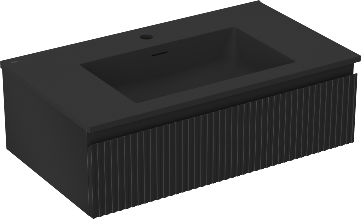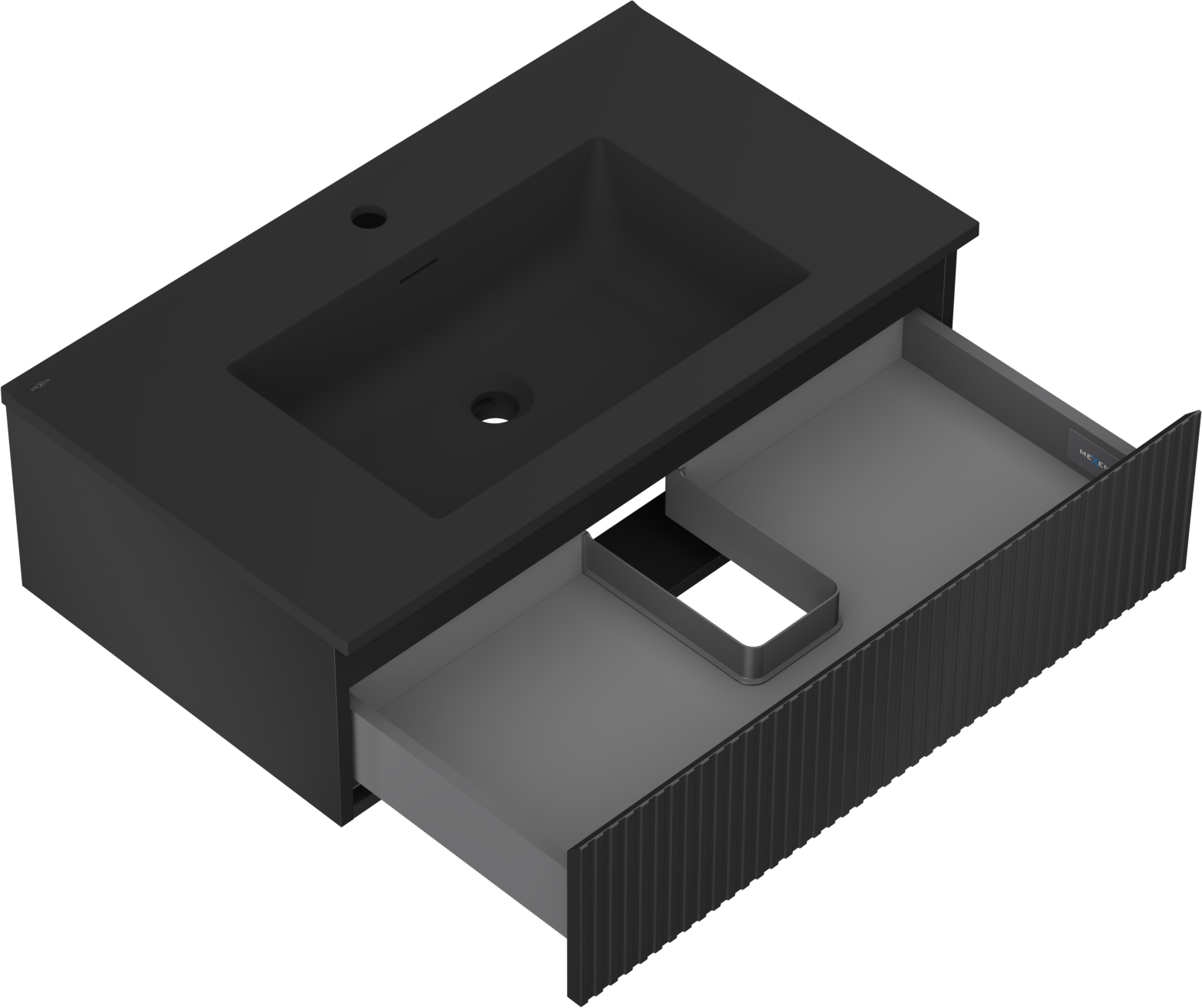 Mexen Rivel vonios spintelė 80 cm su praustuvu Otis, 1 stalčius, rifliuota, juoda matinė - 91A20-08023-1-BF71-W18M71