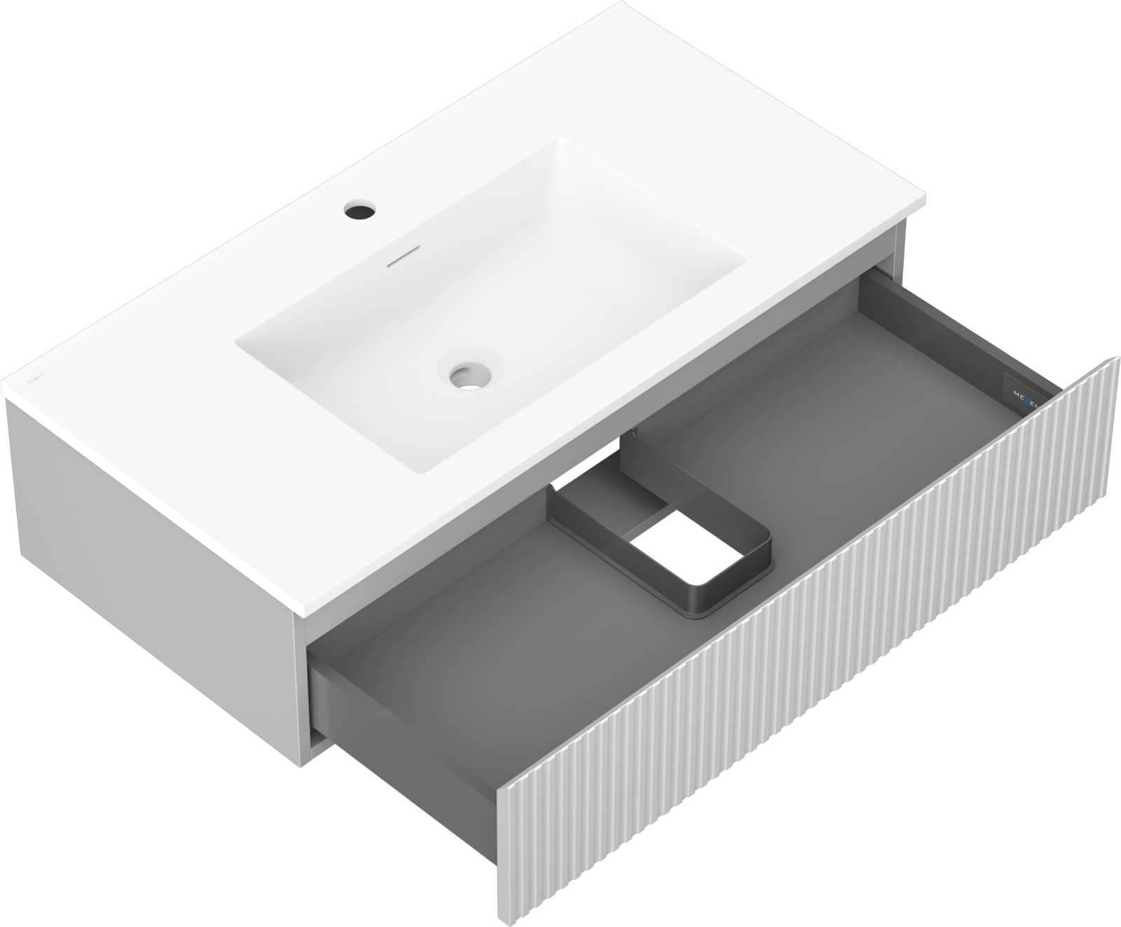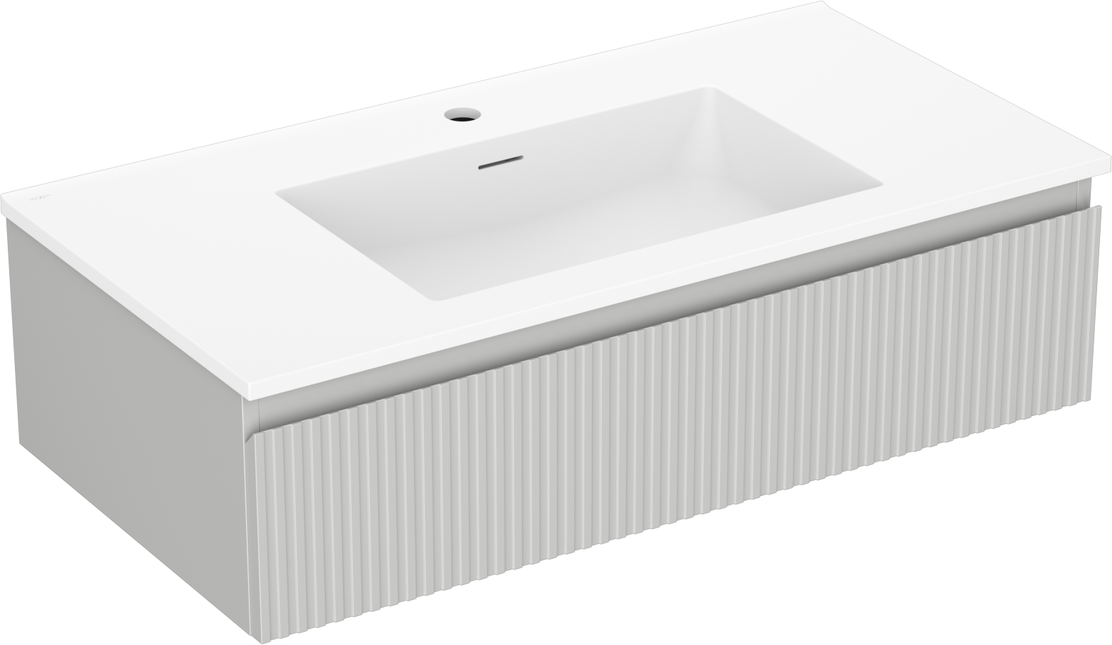 Mexen Rivel Vonios spintelė 90 cm su kriaukle Otis, 1 stalčius, rifliuota, pilka matinė/balta matinė