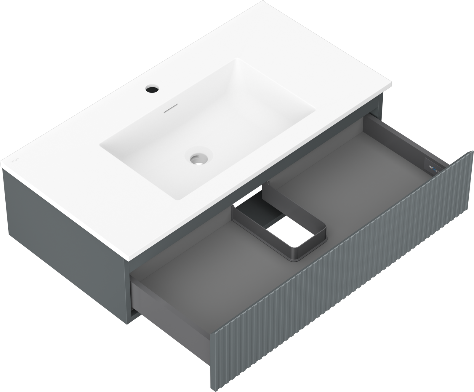 Mexen Rivel vonios spintelė 90 cm su praustuvu Otis, 1 stalčius, grioveliu, grafito matas/baltas matas