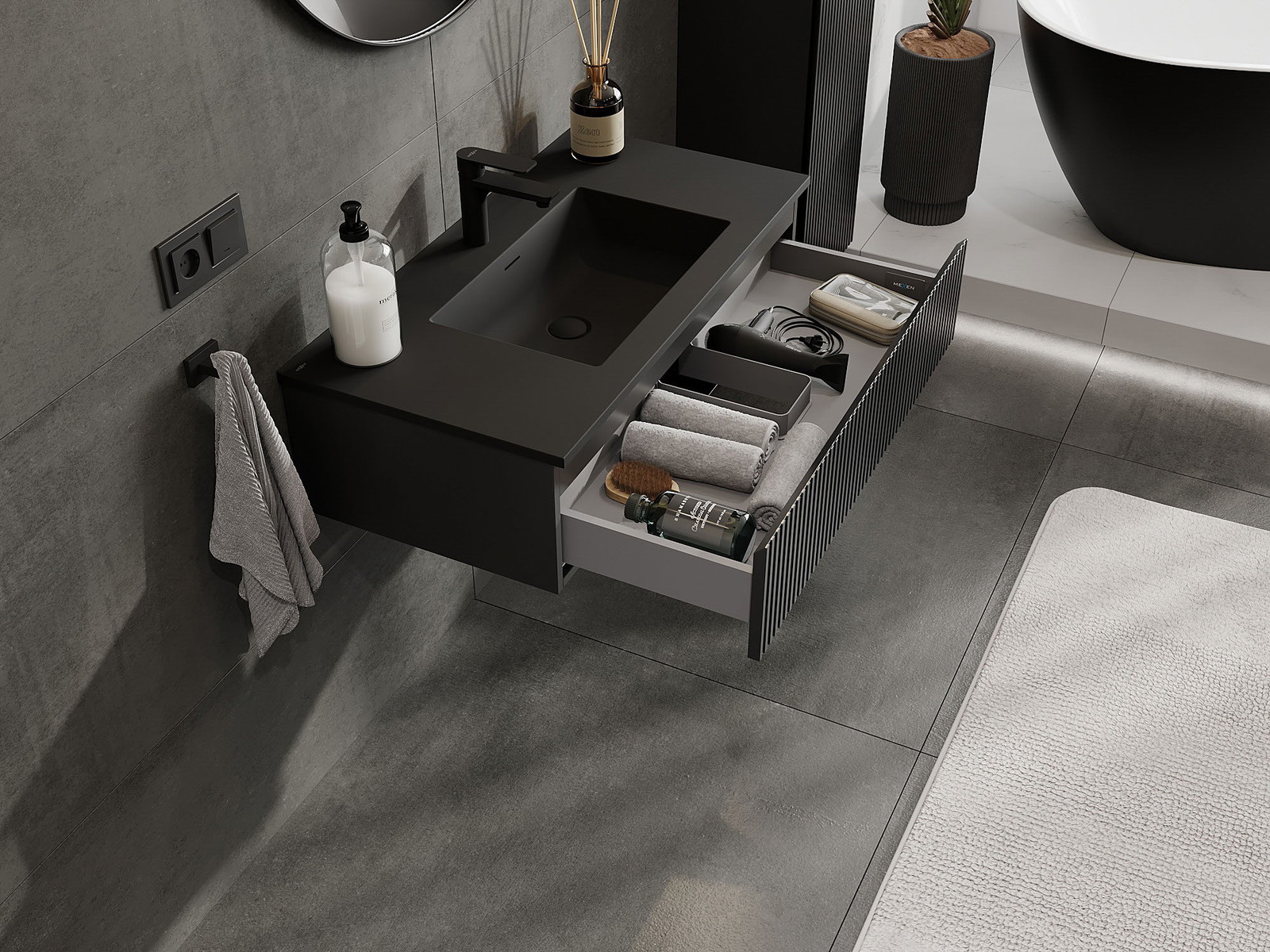 Mexen Rivel vonios spintelė 90 cm su Otis praustuvu, 1 stalčius, rifliuota, juoda matinė - 91A20-09023-1-BF71-W18M71