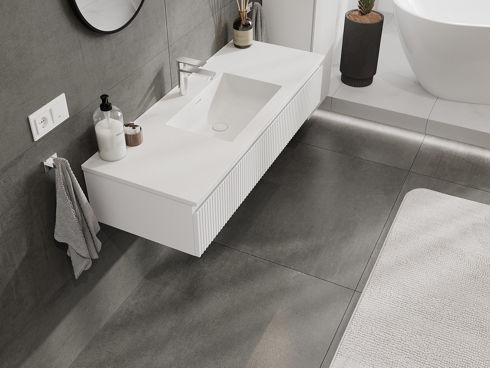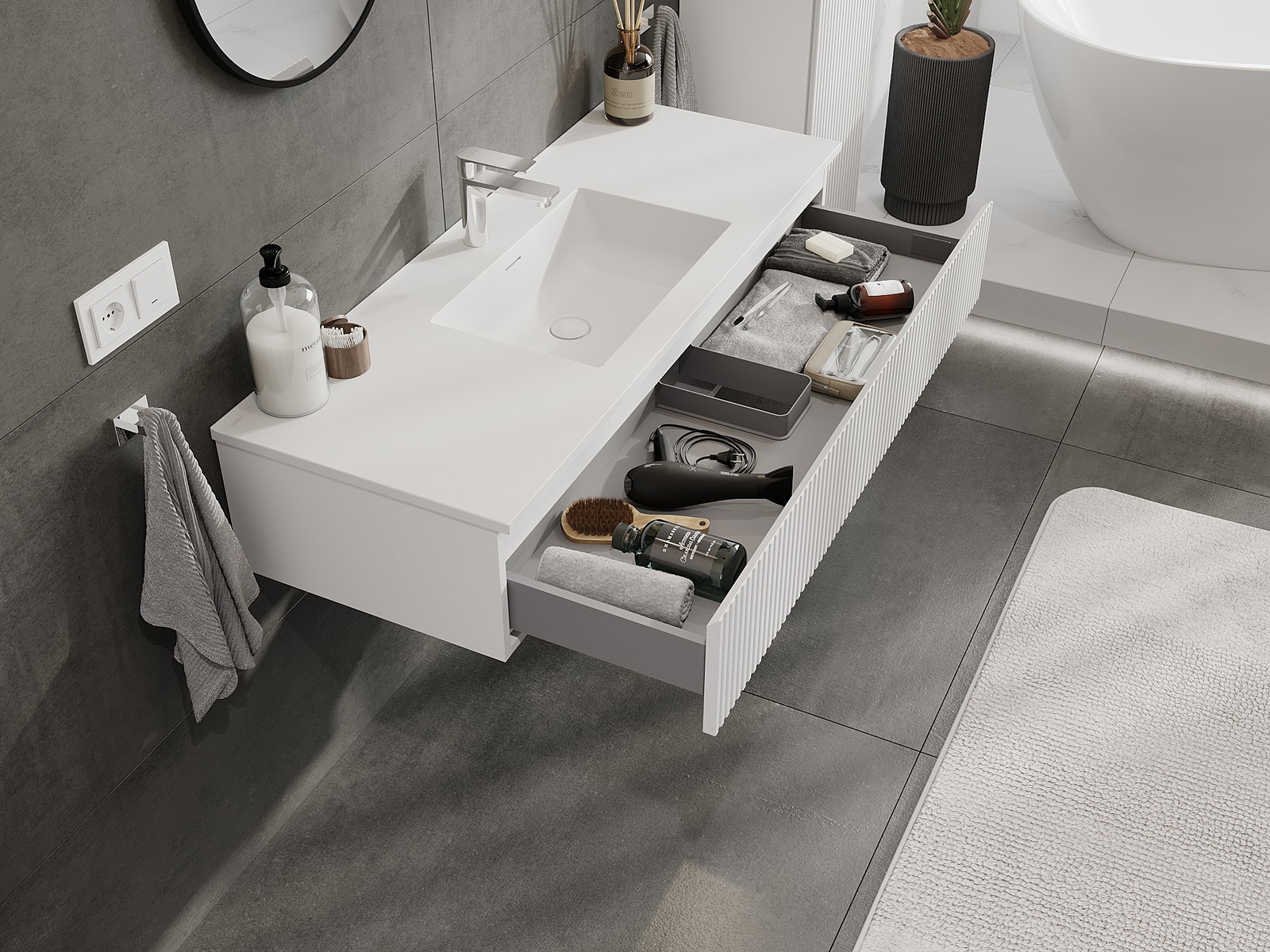 Mexen Rivel vonios spintelė 120 cm su Otis praustuvu, 1 stalčius, rifliuotas, baltas matinis - 91A20-12023-1-BF01-W18M01
