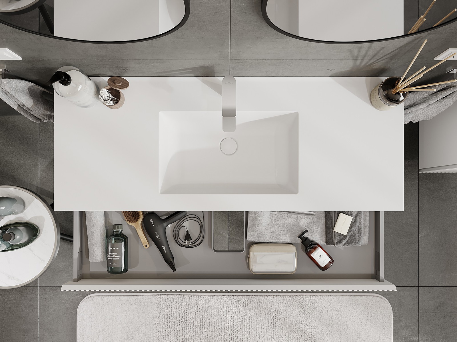 Mūsų moduliniai vonios baldai gali būti derinami tarpusavyje įvairiomis spalvų konfigūracijomis, leidžiant visiškai pritaikyti pagal asmeninius poreikius. Galima pasirinkti tiek atskirų elementų išvaizdą, tiek funkcijas, kas leidžia baldus pritaikyti pagal savo stiliaus ir naudojimo preferencijas.