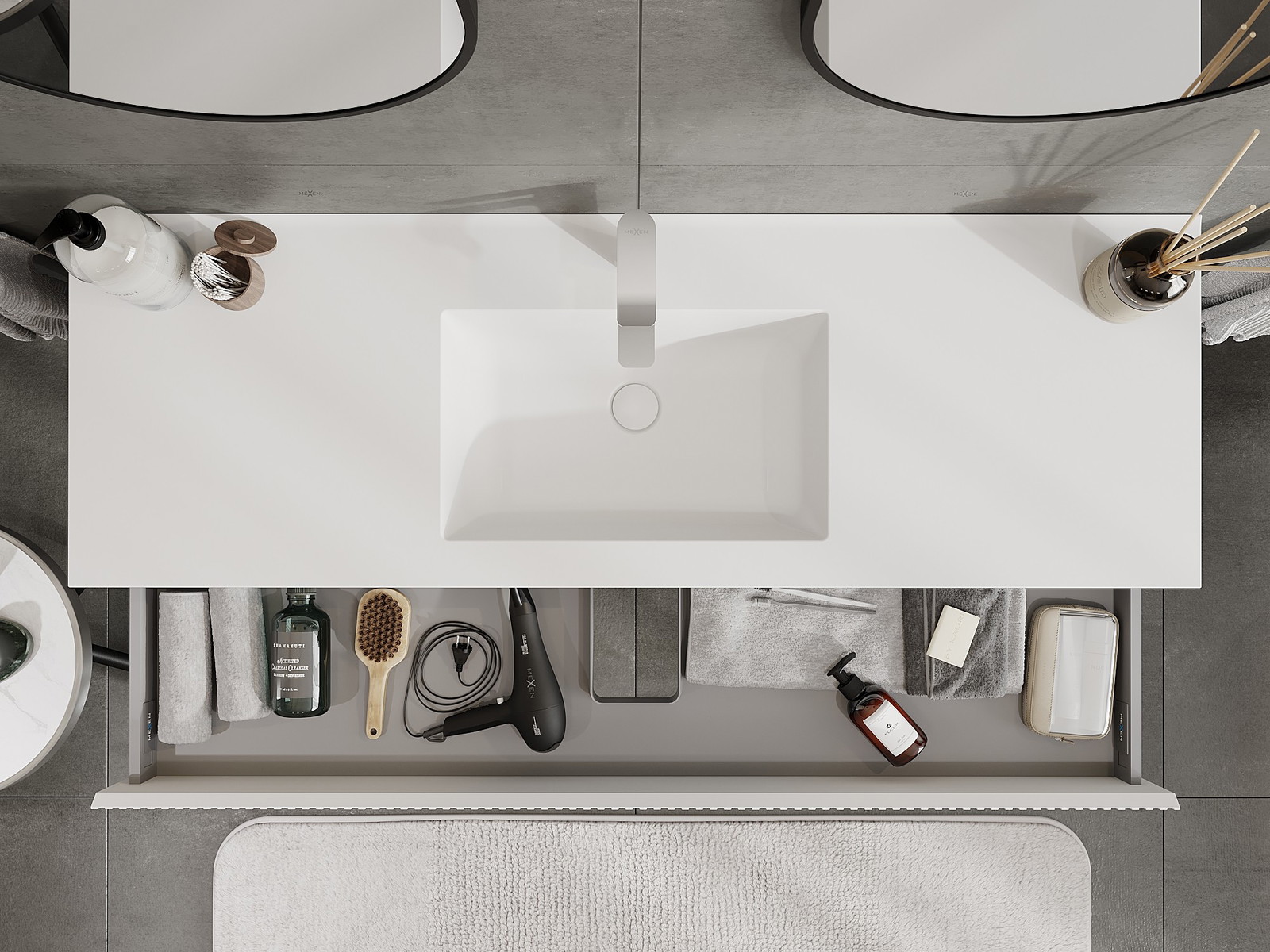 Mūsų moduliniai vonios baldai gali būti derinami tarpusavyje įvairiomis spalvų konfigūracijomis, leidžiant visiškai pritaikyti pagal asmeninius poreikius. Galima pasirinkti tiek atskirų elementų išvaizdą, tiek funkcijas, kas leidžia baldus pritaikyti pagal savo stiliaus ir naudojimo preferencijas.