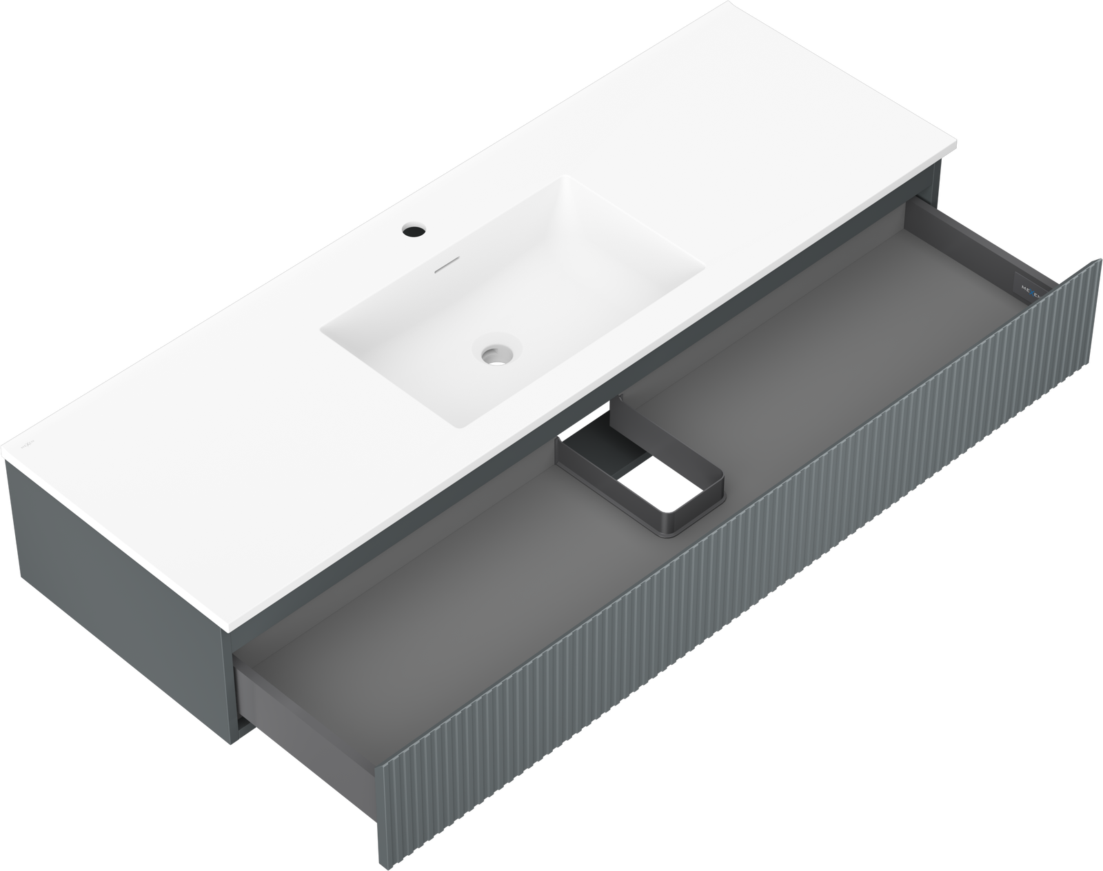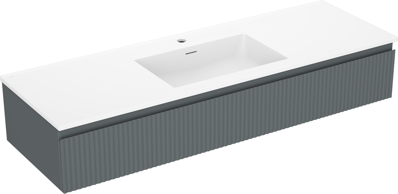 Mexen Rivel 140 cm pločio vonios spintelė su kriaukle Otis, 1 stalčius, rifliuotas, grafito matinis/baltas matinis -