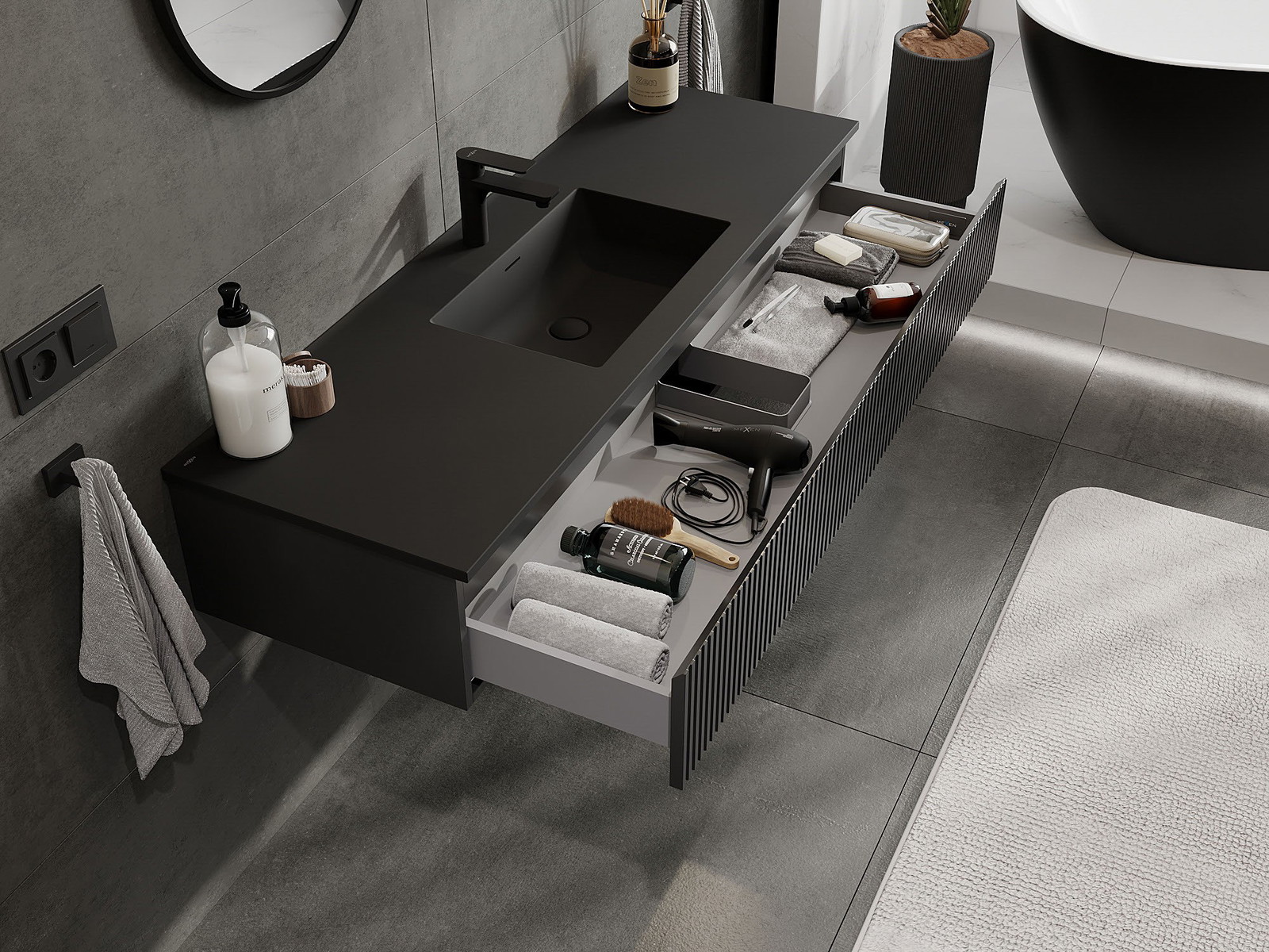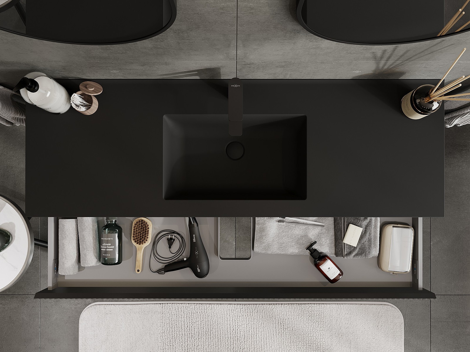 Mexen Rivel vonios spintelė 140 cm su Otis praustuvu, 1 stalčius, briaunuota, juoda matinė - 91A20-14023-1-BF71-W18M71