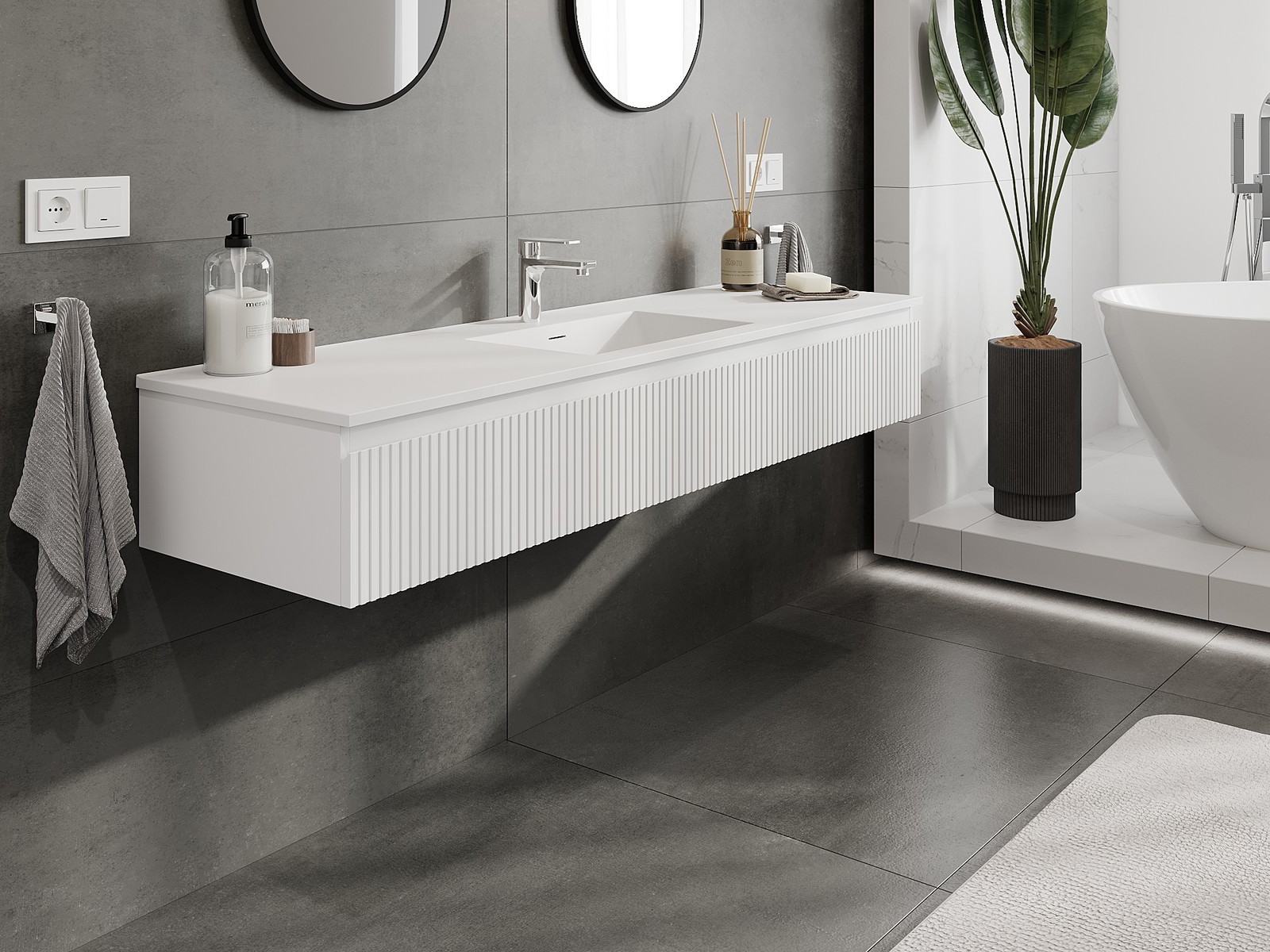 Mūsų moduliniai vonios baldai gali būti derinami tarpusavyje įvairiomis spalvų konfigūracijomis, leidžiant visiškai pritaikyti pagal asmeninius poreikius. Galima pasirinkti tiek atskirų elementų išvaizdą, tiek funkcijas, kas leidžia baldus pritaikyti pagal savo stiliaus ir naudojimo preferencijas.