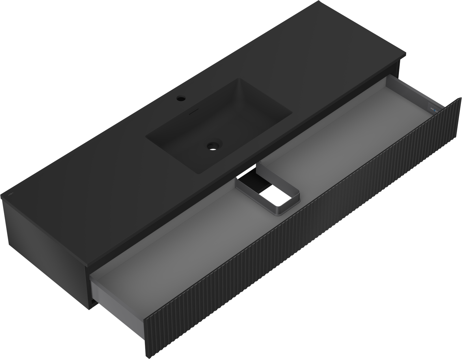 Mexen Rivel vonios spintelė 160 cm su kriaukle Otis, 1 stalčius, rifliuota, juoda matinė - 91A20-16023-1-BF71-W18M71