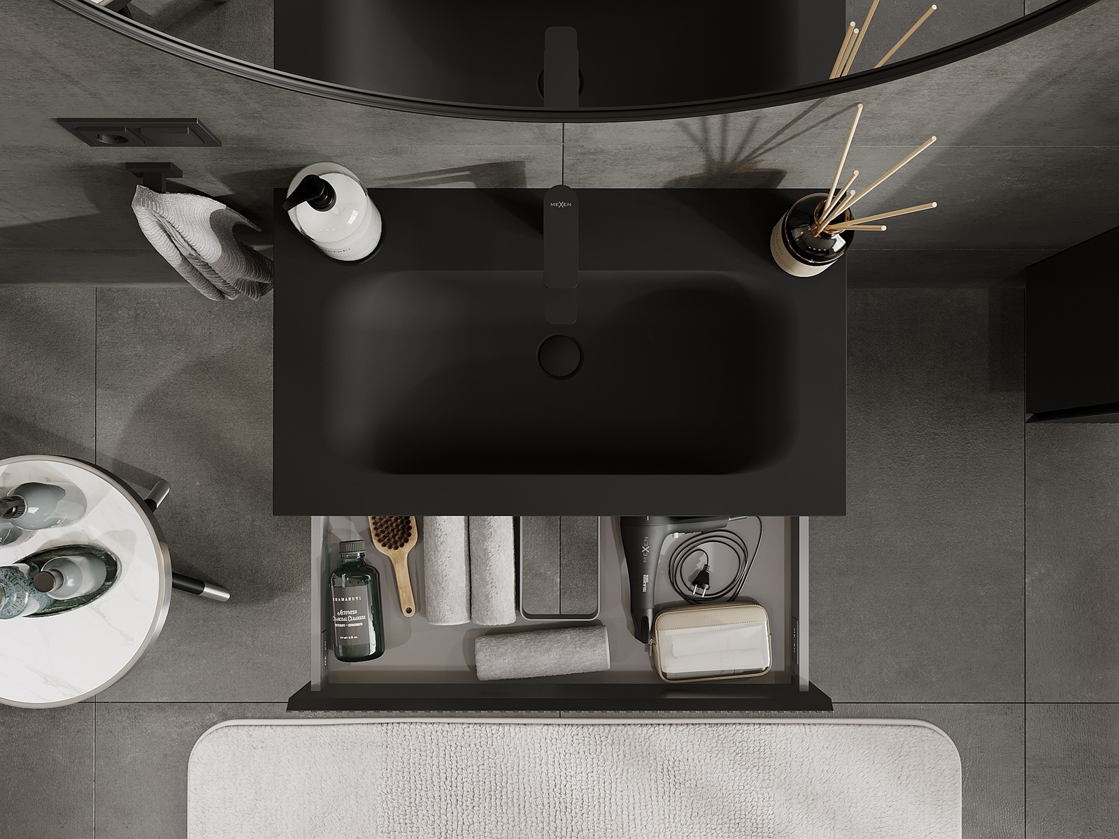 Spintelės korpusas pristatomas visiškai surinktas, tai reiškia maksimalų patogumą ir laiko taupymą. Jums nereikia praleisti valandų surenkant baldą – tiesiog sumontuokite jį pasirinktoje vietoje vonios kambaryje. Tai idealus sprendimas žmonėms, kurie vertina greitą montavimą ir momentinį efektą.