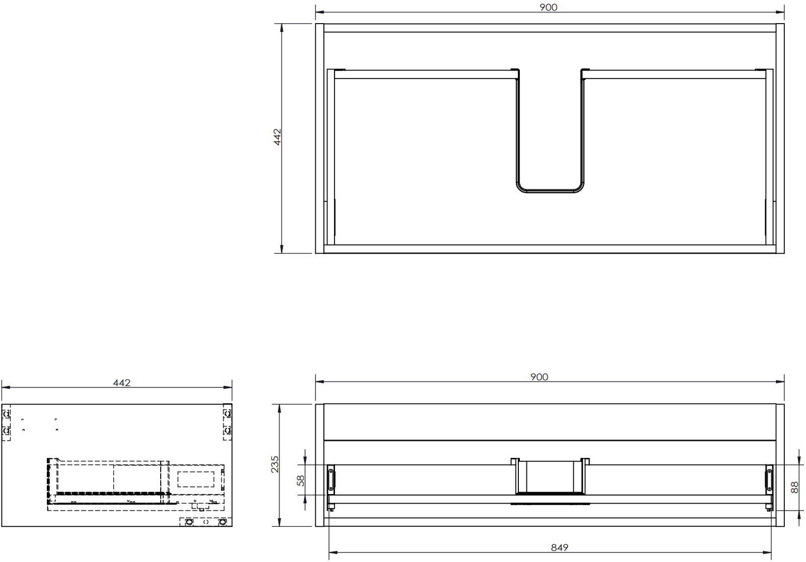 Iškirpimas stalčiuje yra suprojektuotas taip, kad tilptų sifonas, kuris yra būtinas kriauklės įrenginiuose. Dėl to baldas gali būti pilnai funkcionaliai sumontuotas, nereikalaujant atsisakyti vietos stalčiuje dėl įrenginio.