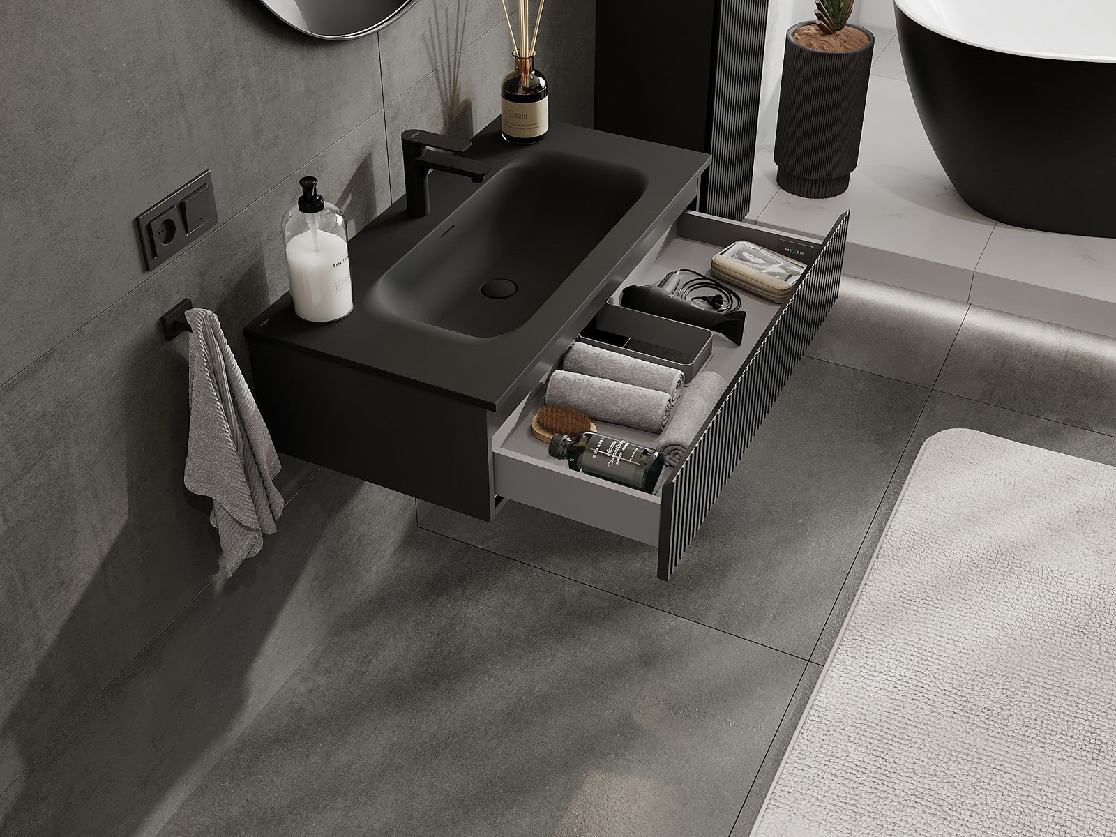 Mūsų moduliniai vonios baldai gali būti derinami tarpusavyje įvairiomis spalvų konfigūracijomis, leidžiant visiškai pritaikyti pagal asmeninius poreikius. Galima pasirinkti tiek atskirų elementų išvaizdą, tiek funkcijas, kas leidžia baldus pritaikyti pagal savo stiliaus ir naudojimo preferencijas.