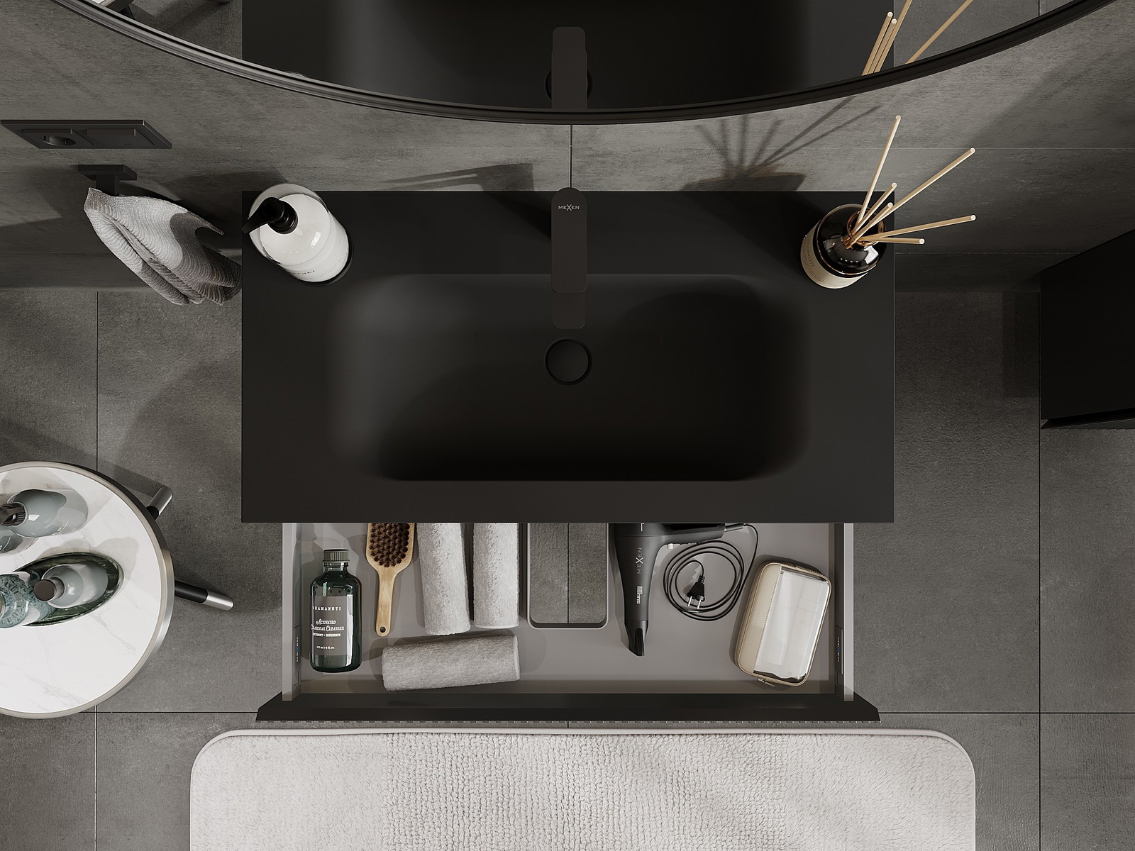 Spintelės korpusas pristatomas visiškai surinktas, tai reiškia maksimalų patogumą ir laiko taupymą. Jums nereikia praleisti valandų surenkant baldą – tiesiog sumontuokite jį pasirinktoje vietoje vonios kambaryje. Tai idealus sprendimas žmonėms, kurie vertina greitą montavimą ir momentinį efektą.