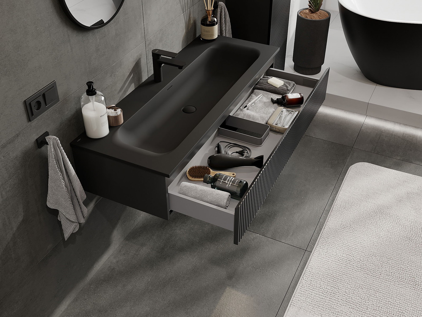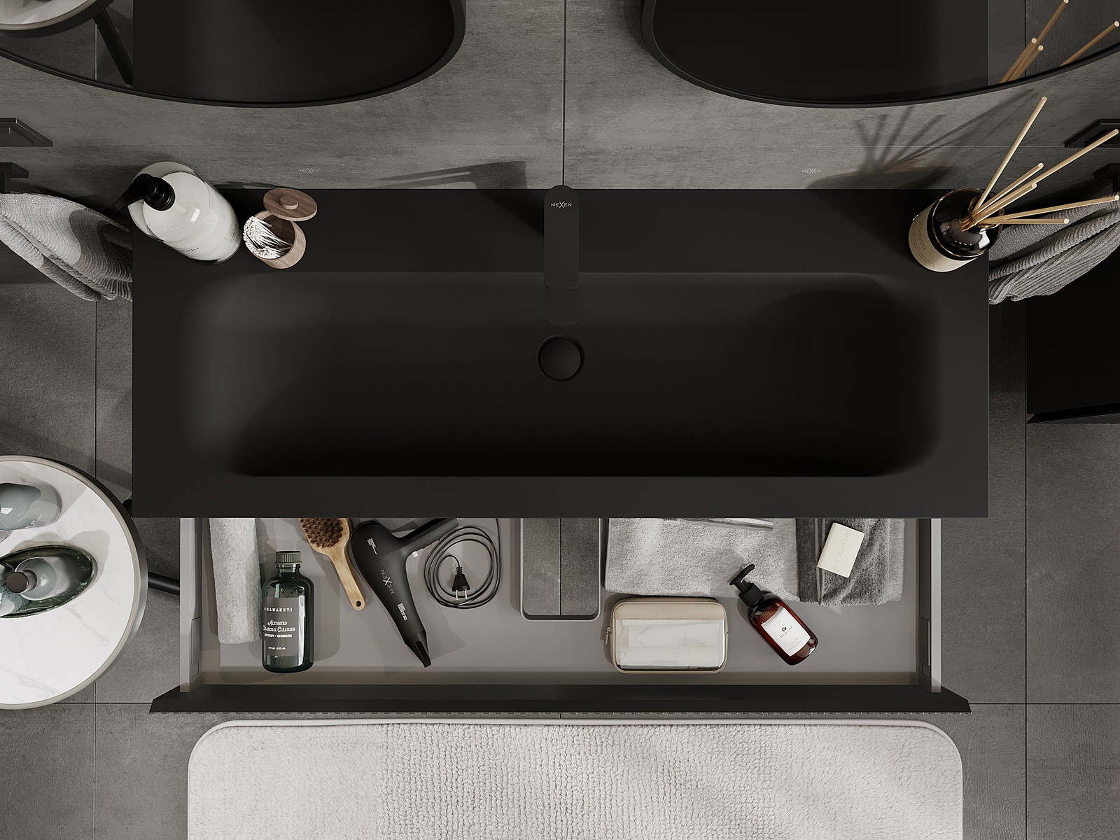 Mūsų moduliniai vonios baldai gali būti derinami tarpusavyje įvairiomis spalvų konfigūracijomis, leidžiant visiškai pritaikyti pagal asmeninius poreikius. Galima pasirinkti tiek atskirų elementų išvaizdą, tiek funkcijas, kas leidžia baldus pritaikyti pagal savo stiliaus ir naudojimo preferencijas.