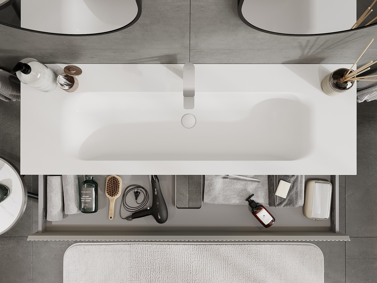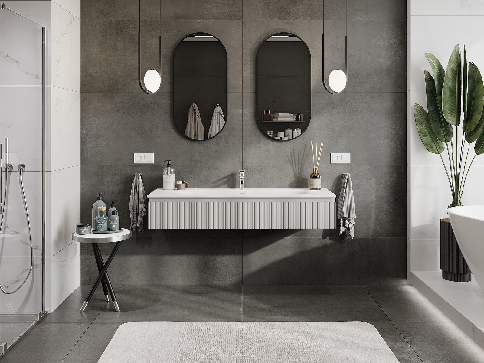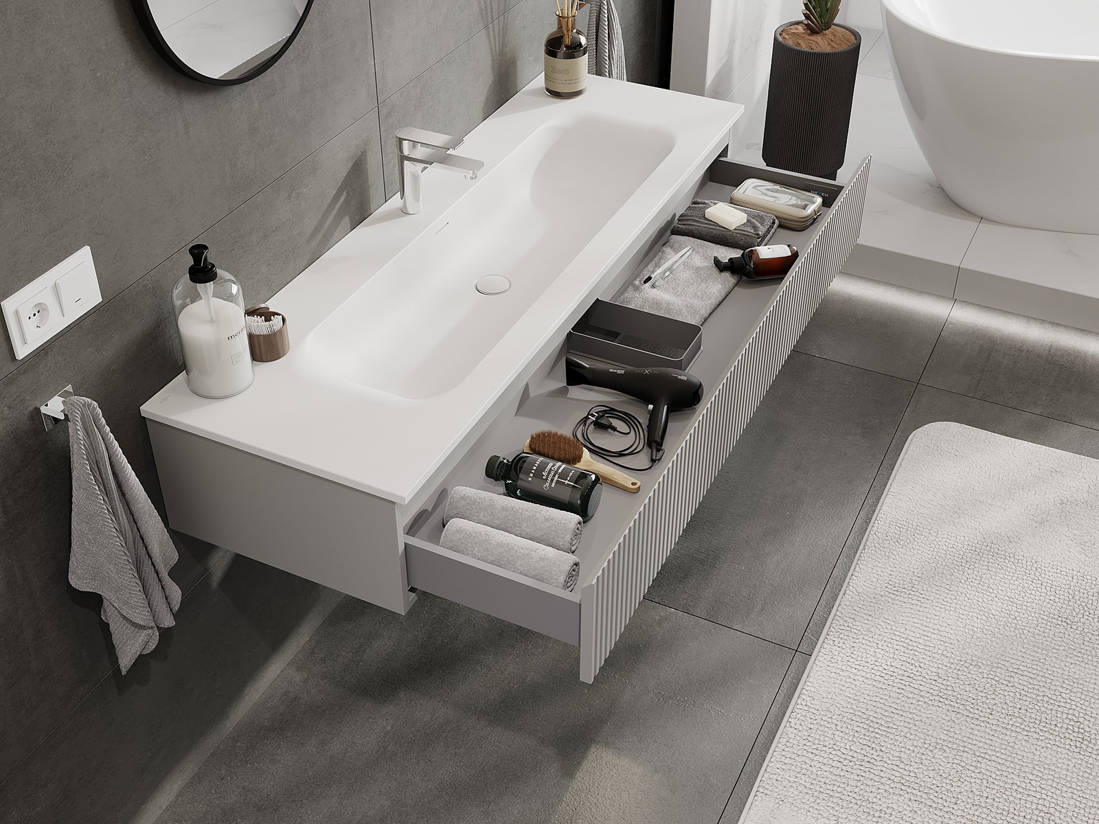Mūsų moduliniai vonios baldai gali būti derinami tarpusavyje įvairiomis spalvų konfigūracijomis, leidžiant visiškai pritaikyti pagal asmeninius poreikius. Galima pasirinkti tiek atskirų elementų išvaizdą, tiek funkcijas, kas leidžia baldus pritaikyti pagal savo stiliaus ir naudojimo preferencijas.