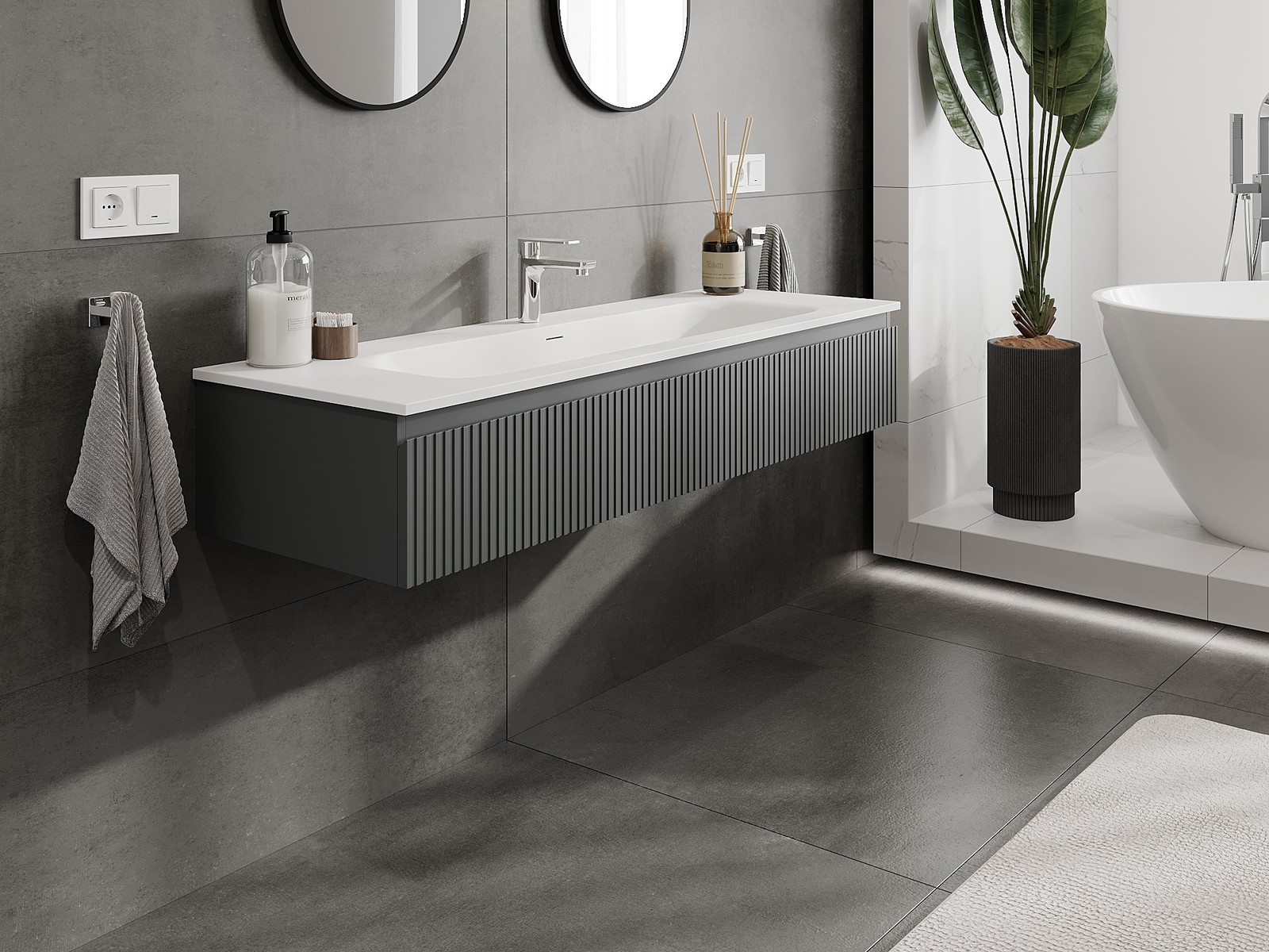 Mūsų moduliniai vonios baldai gali būti derinami tarpusavyje įvairiomis spalvų konfigūracijomis, leidžiant visiškai pritaikyti pagal asmeninius poreikius. Galima pasirinkti tiek atskirų elementų išvaizdą, tiek funkcijas, kas leidžia baldus pritaikyti pagal savo stiliaus ir naudojimo preferencijas.