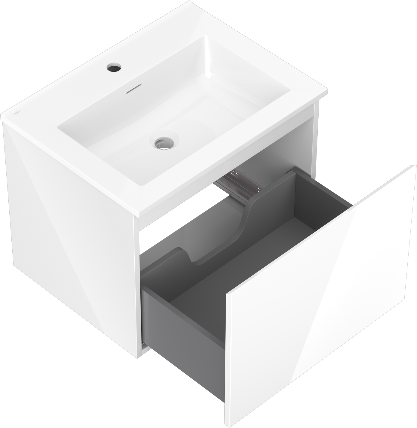 Mexen Orio vonios kambario spintelė 60 cm su Otis kriaukle, 1 stalčius, blizgi balta - 91A10-06047-1-BF00-W18M00