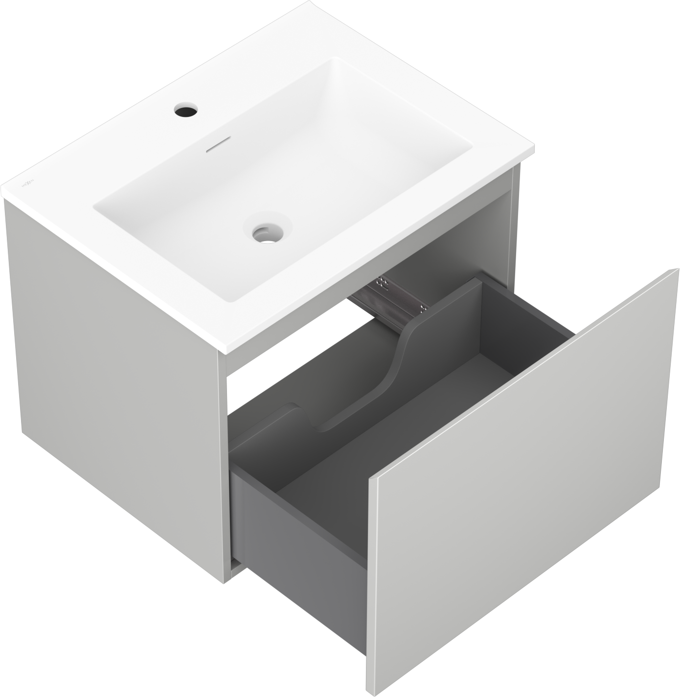 Mexen Orio vonios spintelė 60 cm su Otis kriaukle, 1 stalčius, pilka matinė/balta matinė - 91A10-06047-1-BF62-W18M01