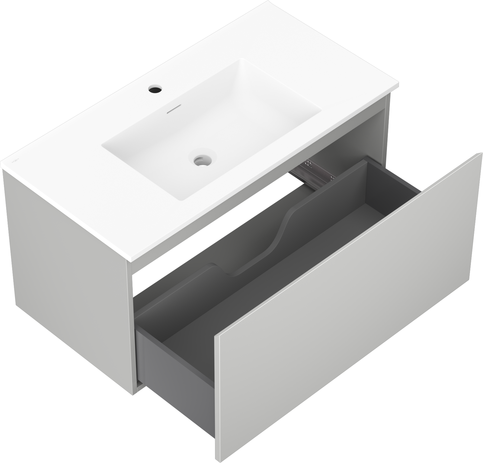 Mexen Orio vonios spintelė 90 cm su Otis praustuvu, 1 stalčius, pilkas matinis/baltas matinis - 91A10-09047-1-BF62-W18M01