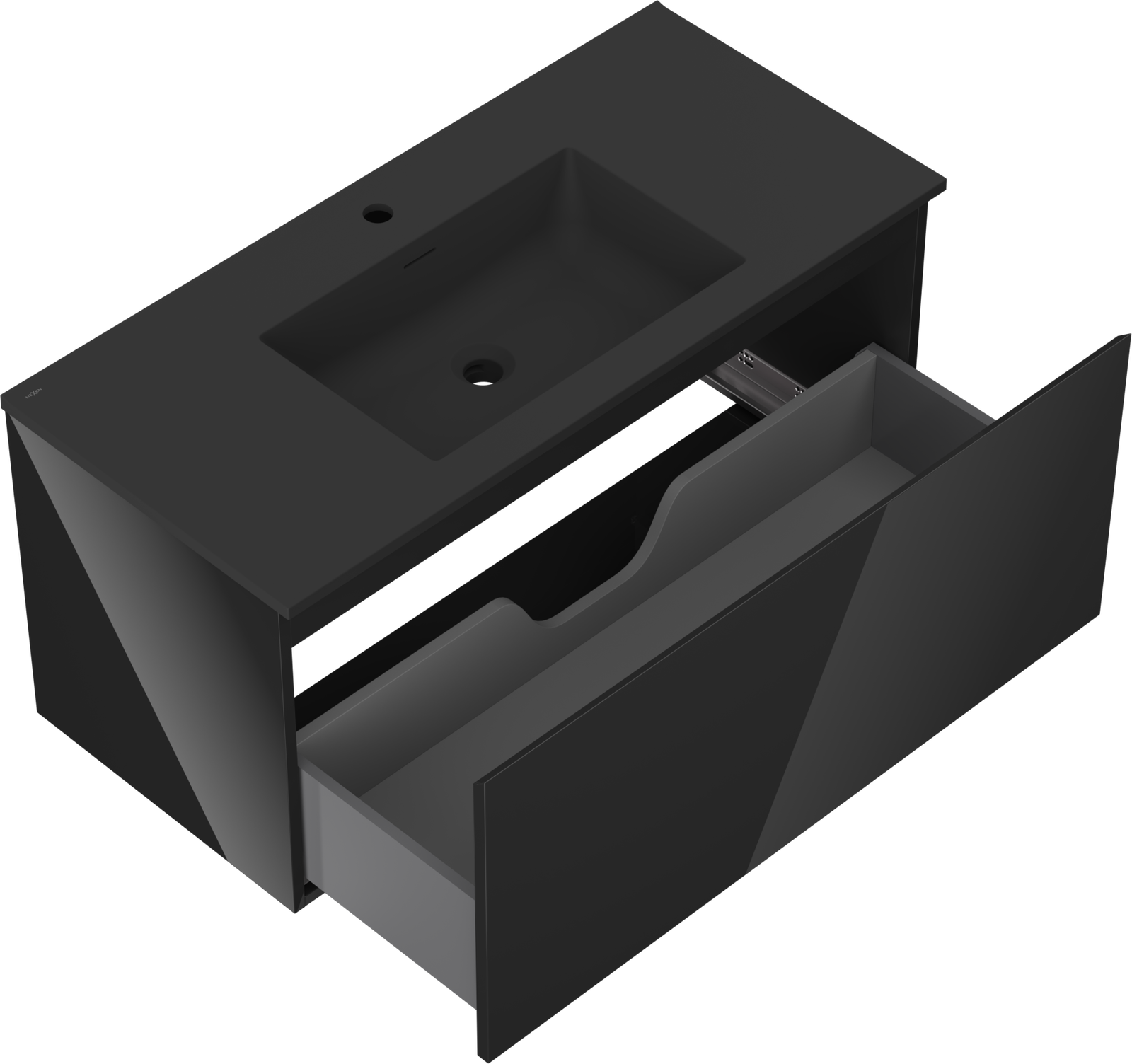 Mexen Orio vonios spintelė 100 cm su Otis praustuvu, 1 stalčius, juodas blizgus/juodas matinis - 91A10-10047-1-BF70-W18M71