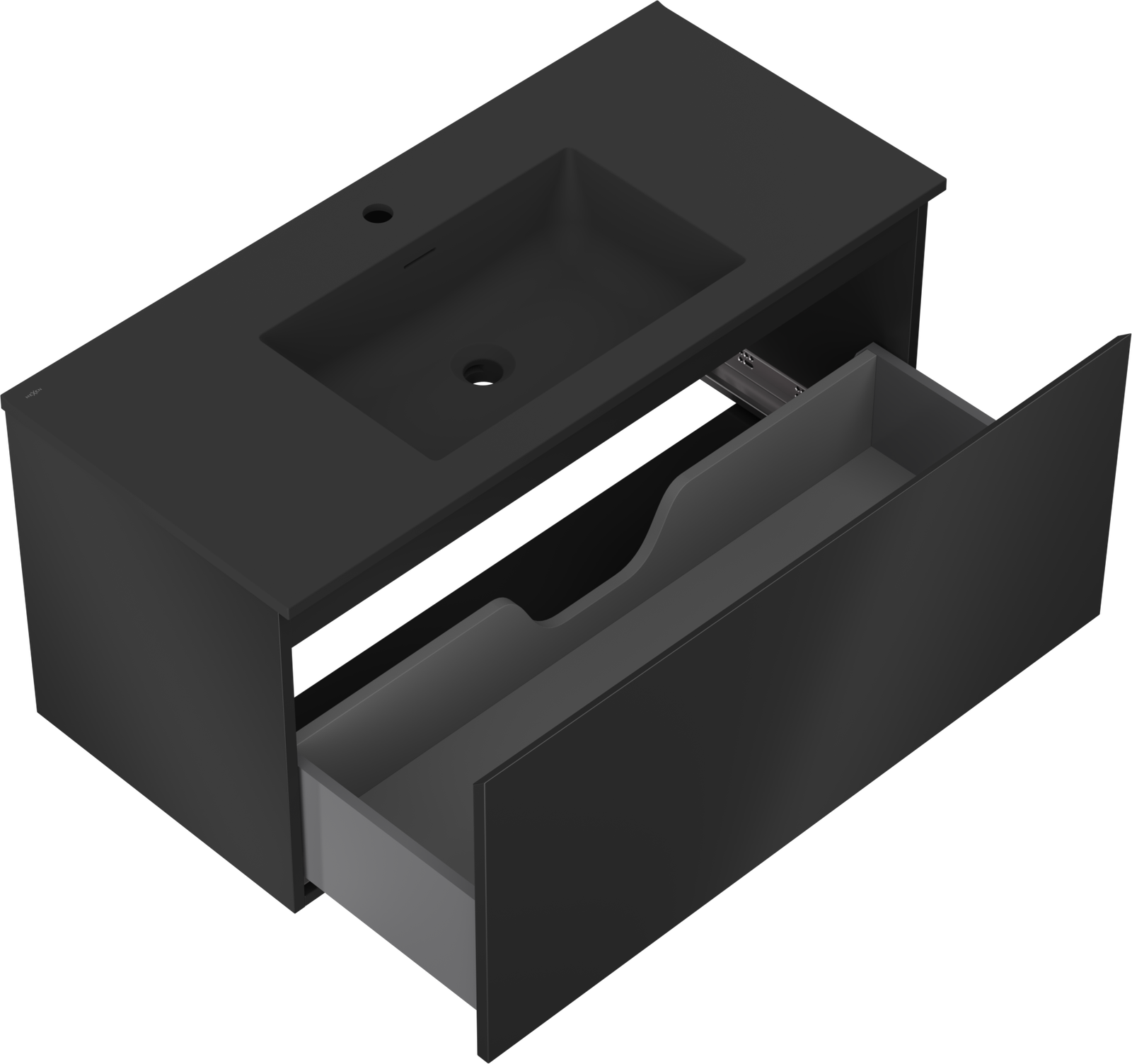 Mexen Orio vonios kambario spintelė 100 cm su kriaukle Otis, 1 stalčius, juoda matinė - 91A10-10047-1-BF71-W18M71