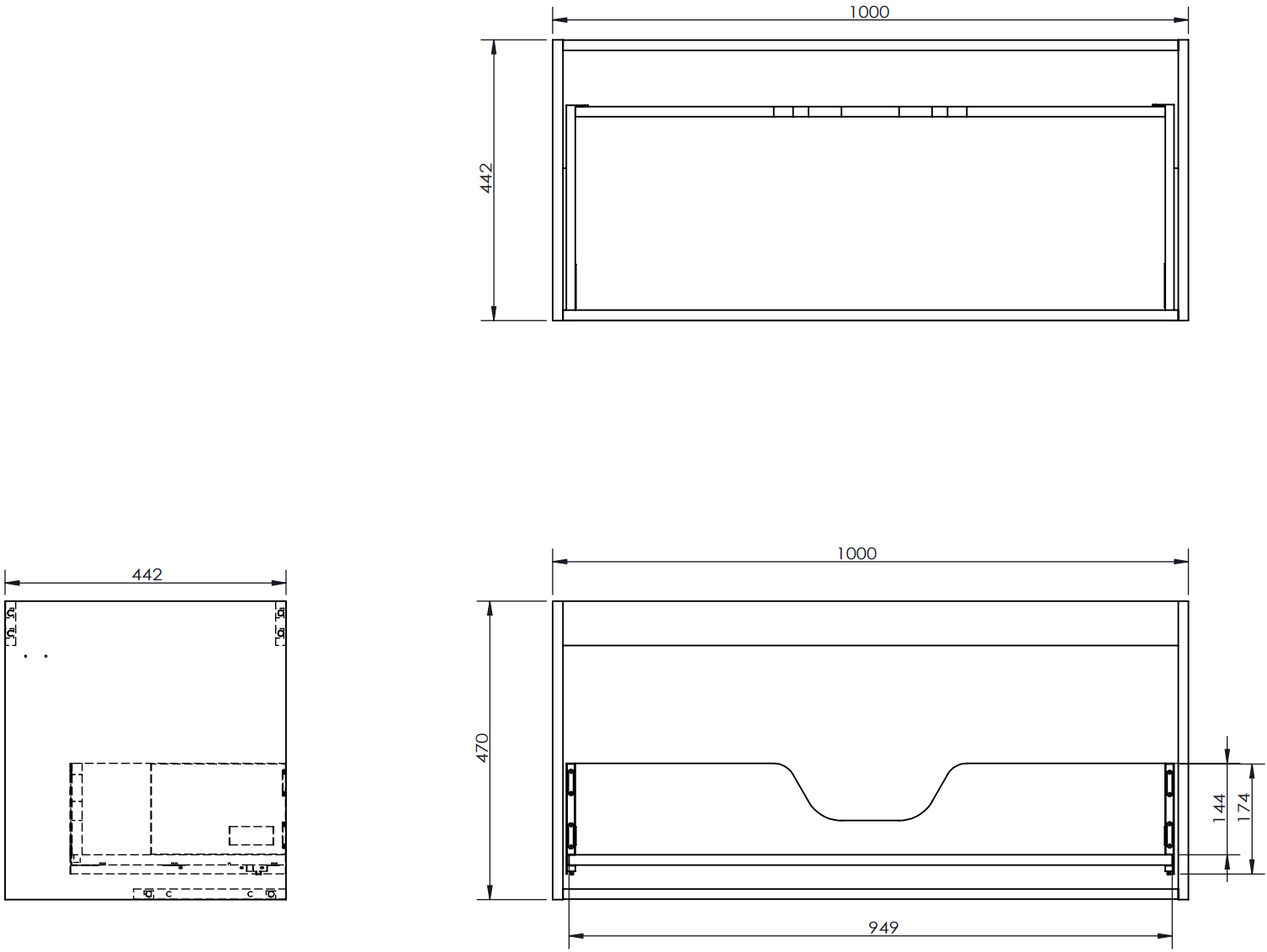 Iškirpimas stalčiuje yra suprojektuotas taip, kad tilptų sifonas, kuris yra būtinas kriauklės įrenginiuose. Dėl to baldas gali būti pilnai funkcionaliai sumontuotas, nereikalaujant atsisakyti vietos stalčiuje dėl įrenginio.