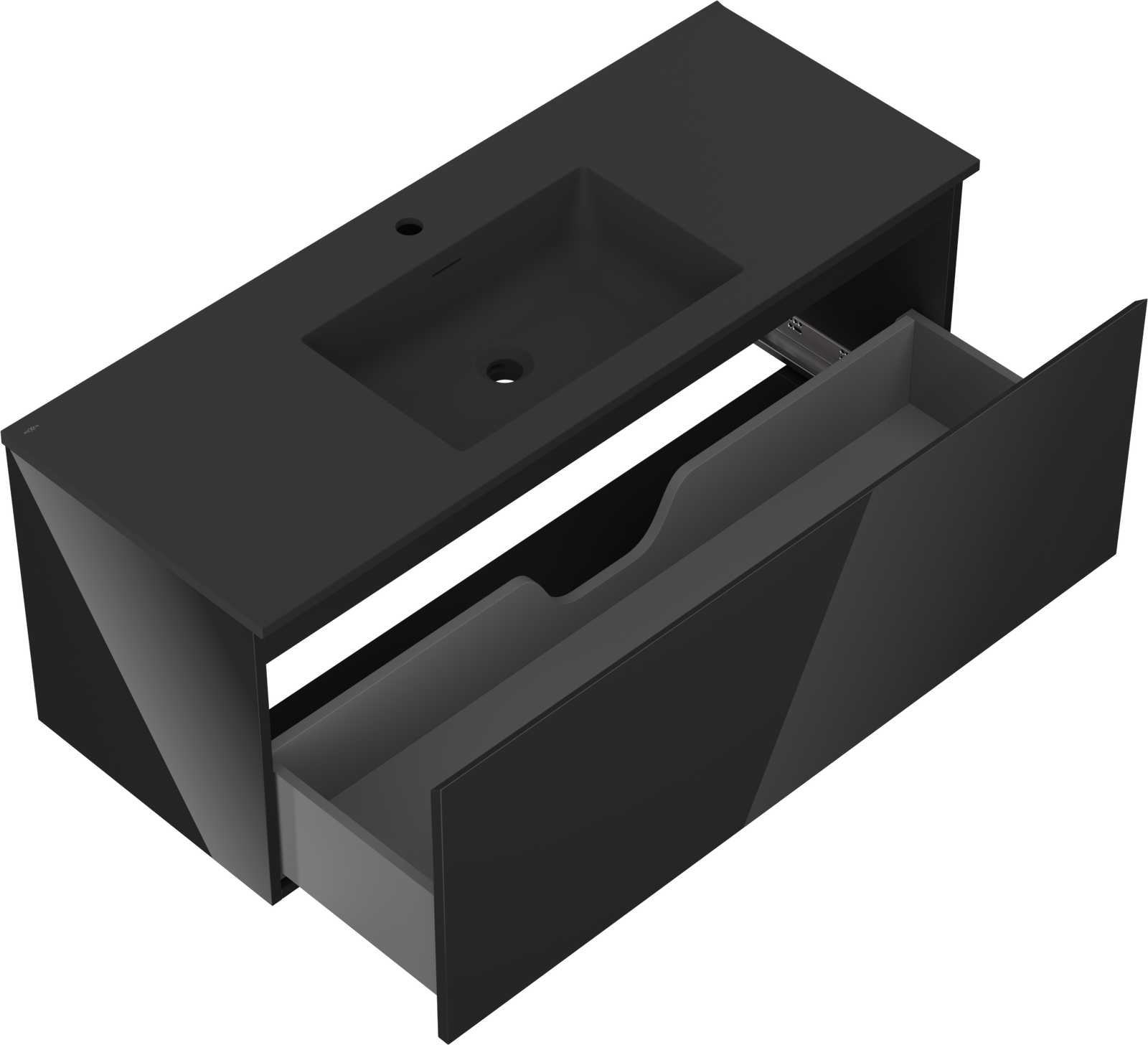 Mexen Orio Vonios spintelė 120 cm su kriaukle Otis, 1 stalčius, juodas blizgus/juodas matinis - 91A10-12047-1-BF70-W18M71