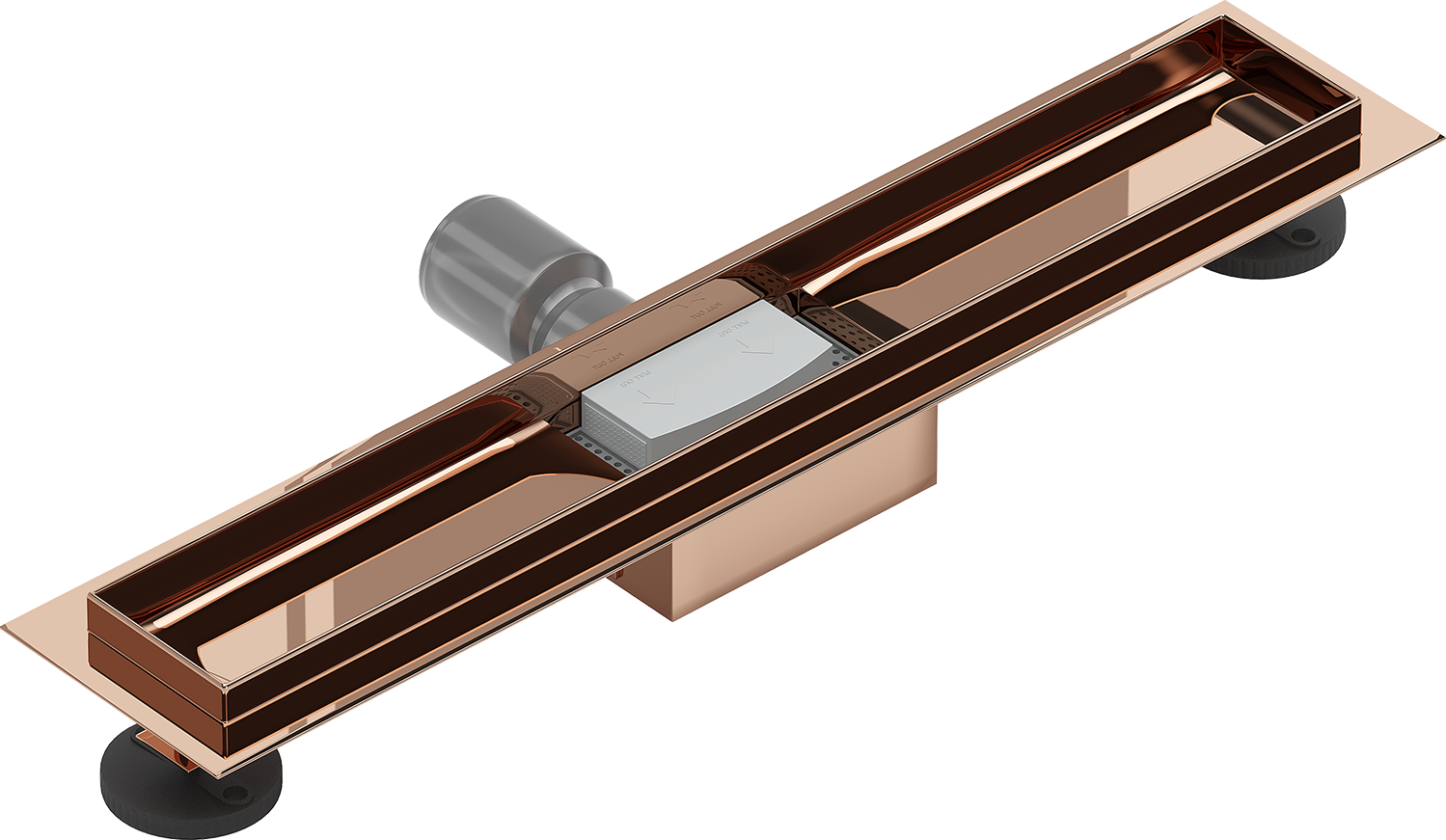 Nutekėjimas yra su reguliuojamomis kojelėmis, kurios leidžia nustatyti tinkamą nutekėjimo aukštį ir išlyginti jį ant nelygaus paviršiaus. Tokiu būdu nutekėjimas dar geriau pritaikomas prie tam tikros vonios kambario sąlygų.