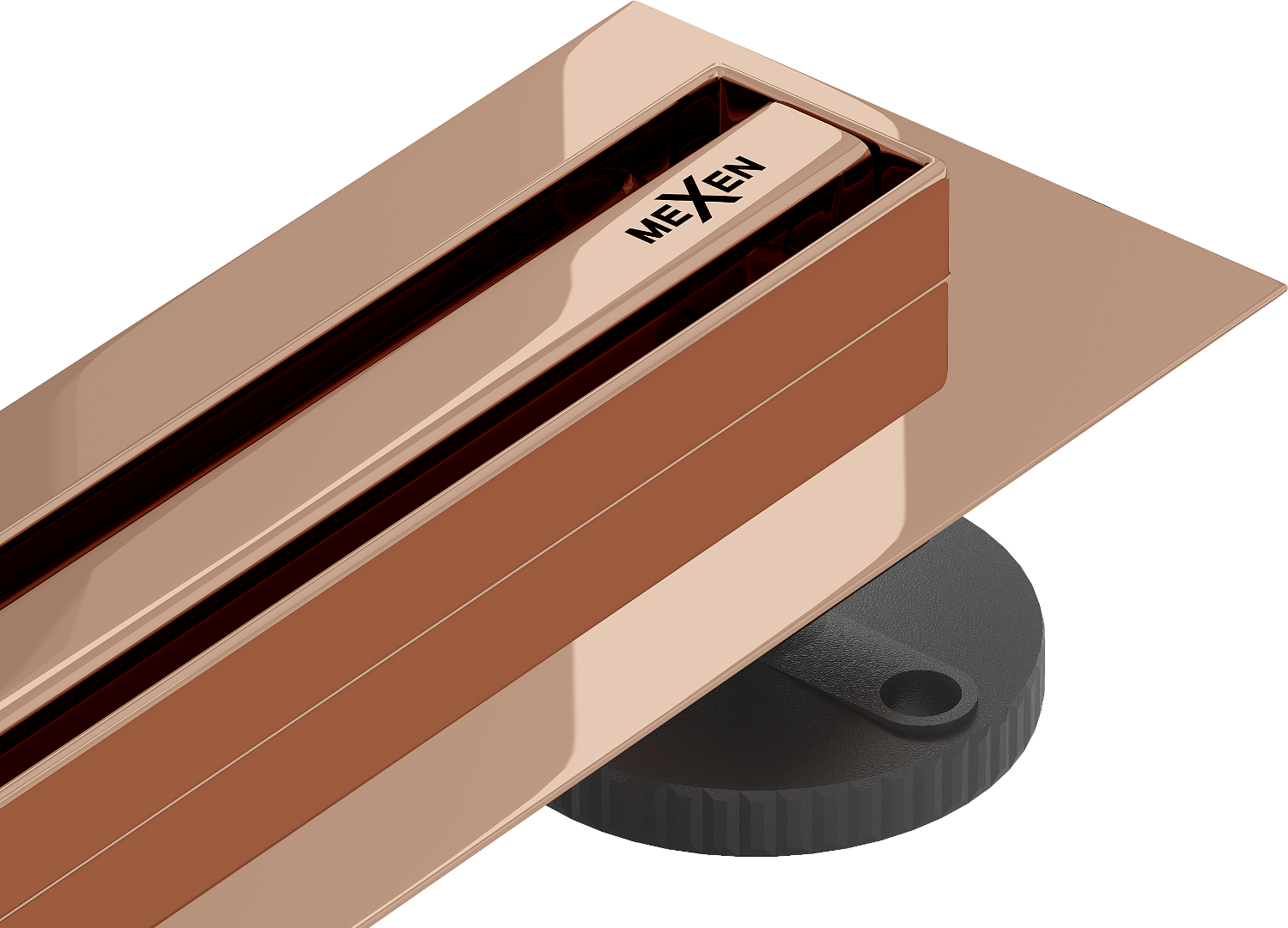 Mexen Flat 360° Slim 140 cm sukamoji linijinė nutekamoji anga, rožinis auksas - 1641140