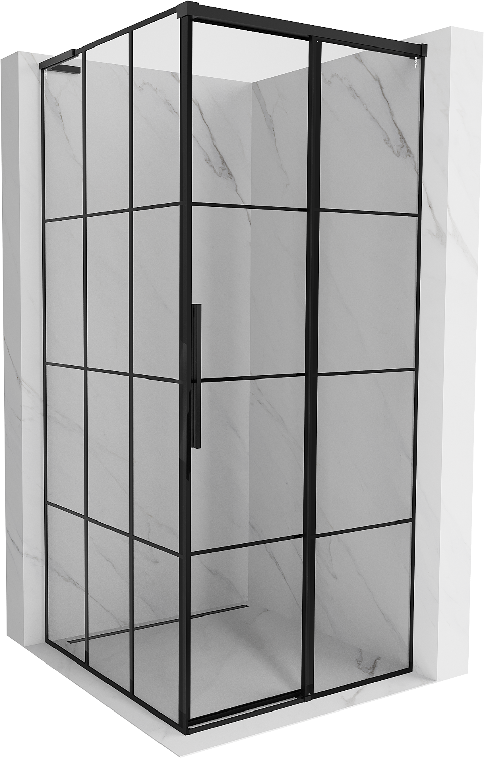 Mexen Rox L dešinysis slankiojamasis dušo kabinas 95 x 95 cm, juodas tinklelis, juodas - 8C2L-095-095-70-77-P