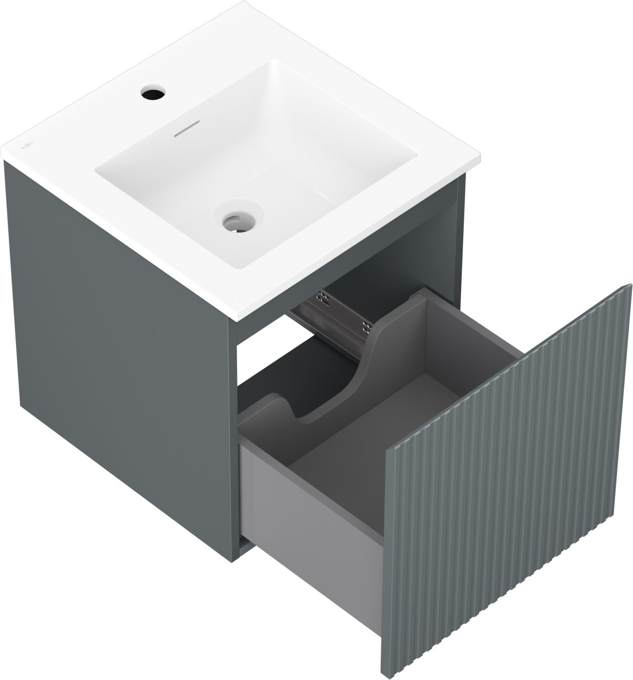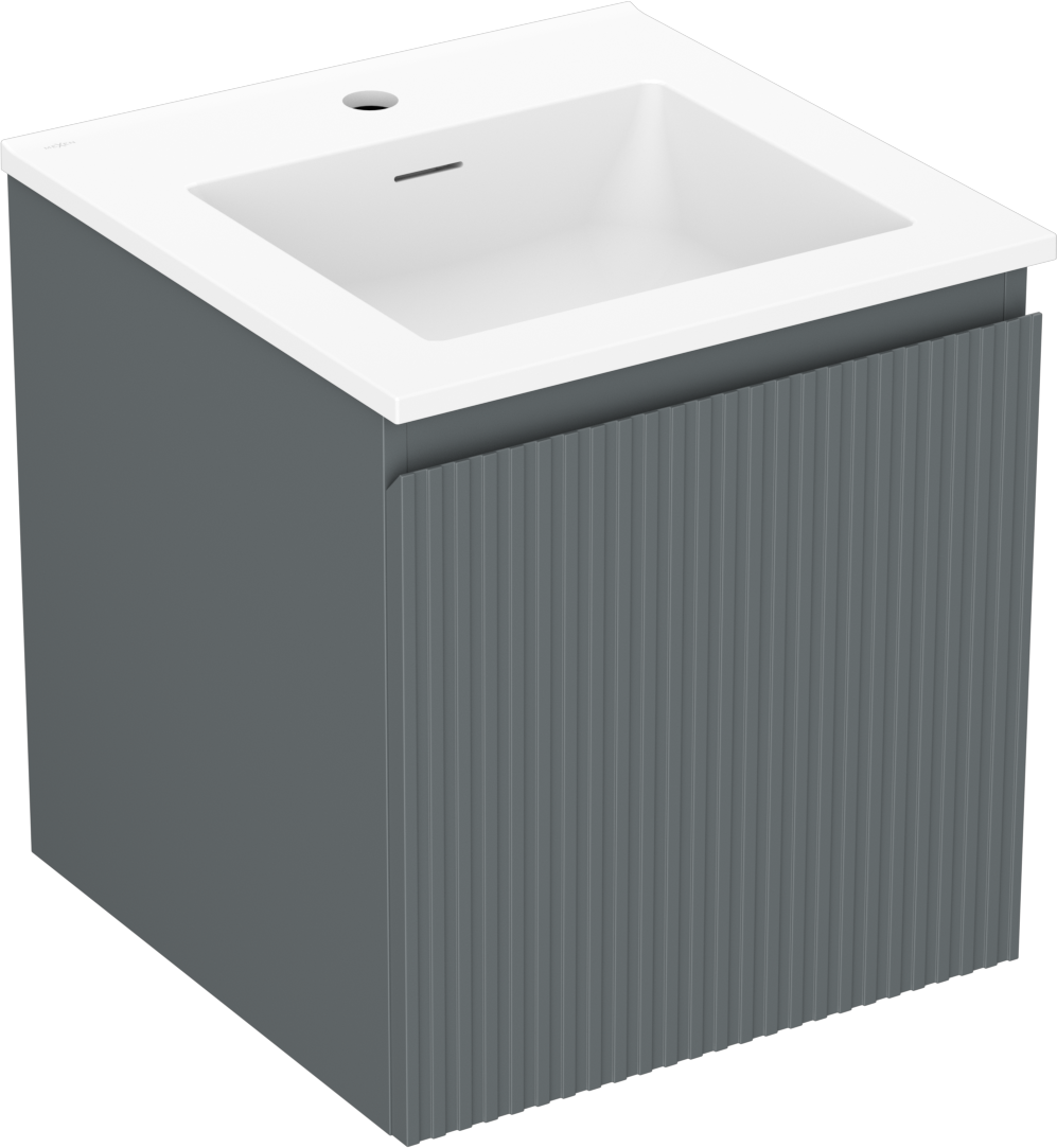 Mexen Rivel vonios spintelė 45 cm su kriaukle Otis, 1 stalčius, grioveliais, matinės grafito/baltos spalvos