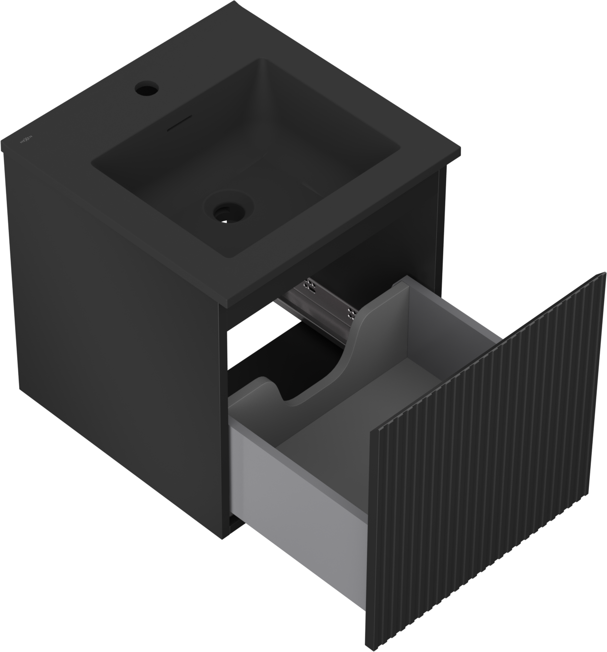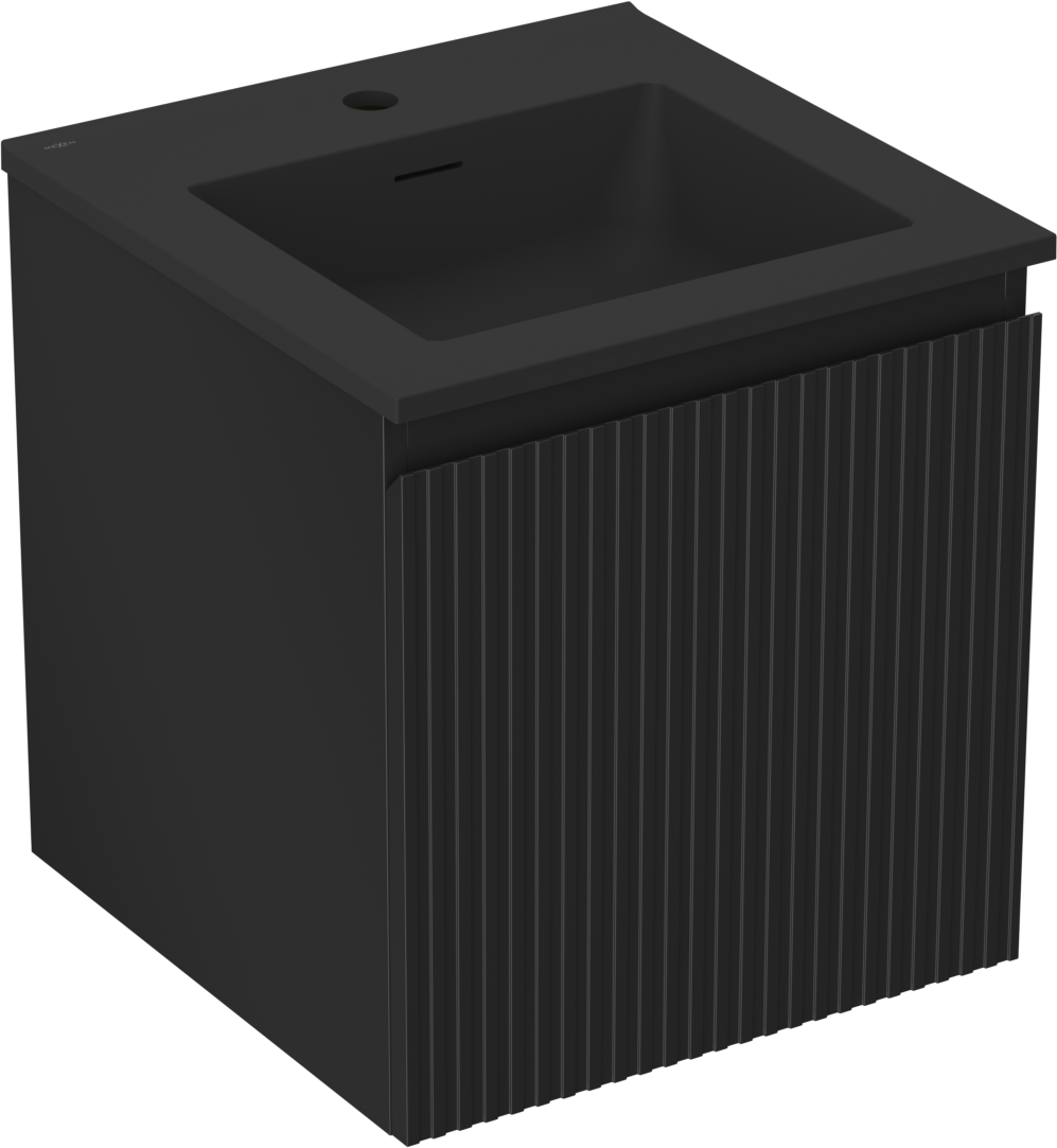 Mexen Rivel vonios kambario spintelė 45 cm su kriaukle Otis, 1 stalčius, rifliuotas, juodas matinė - 91A20-04547-1-BF71-W18M71