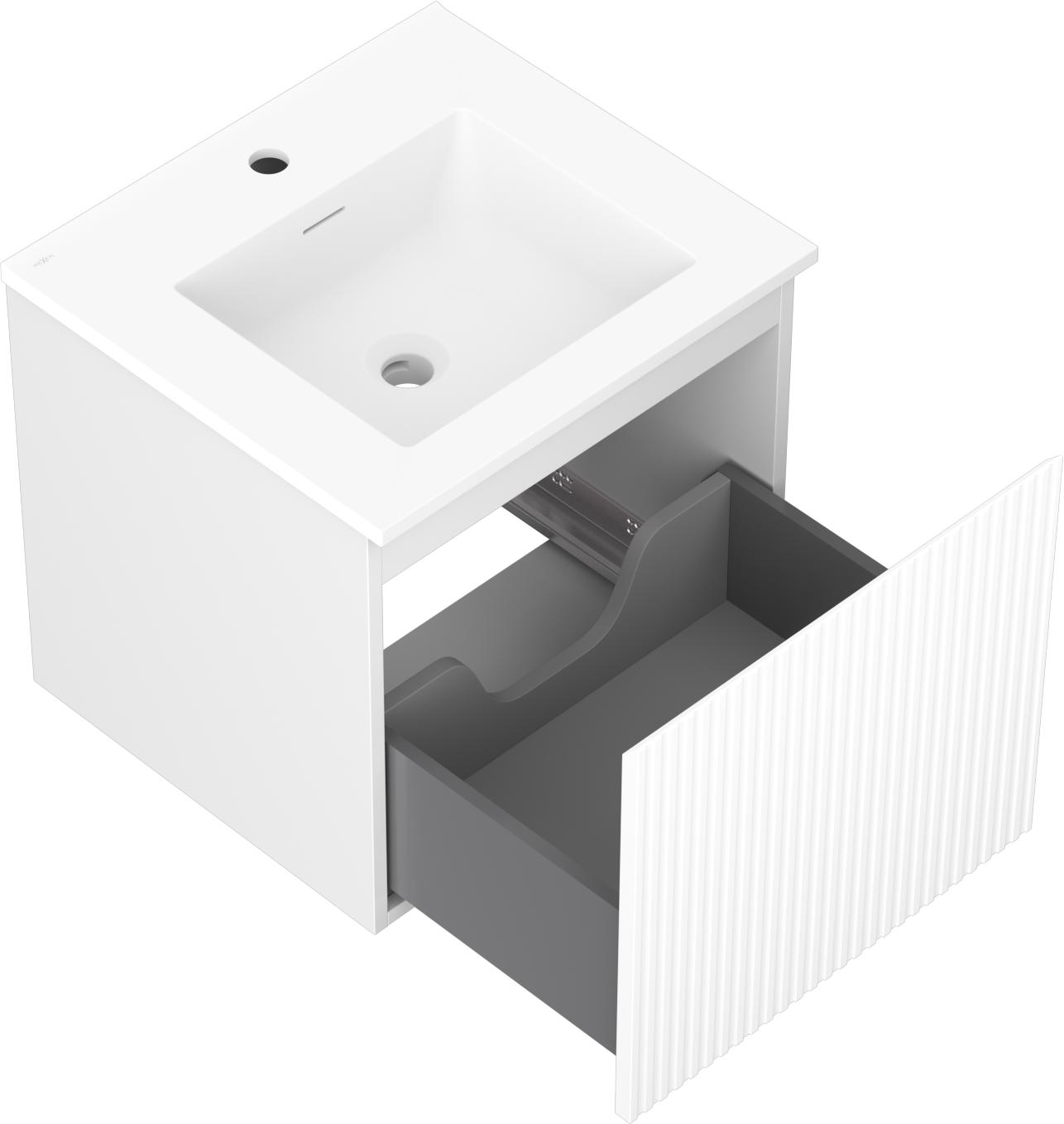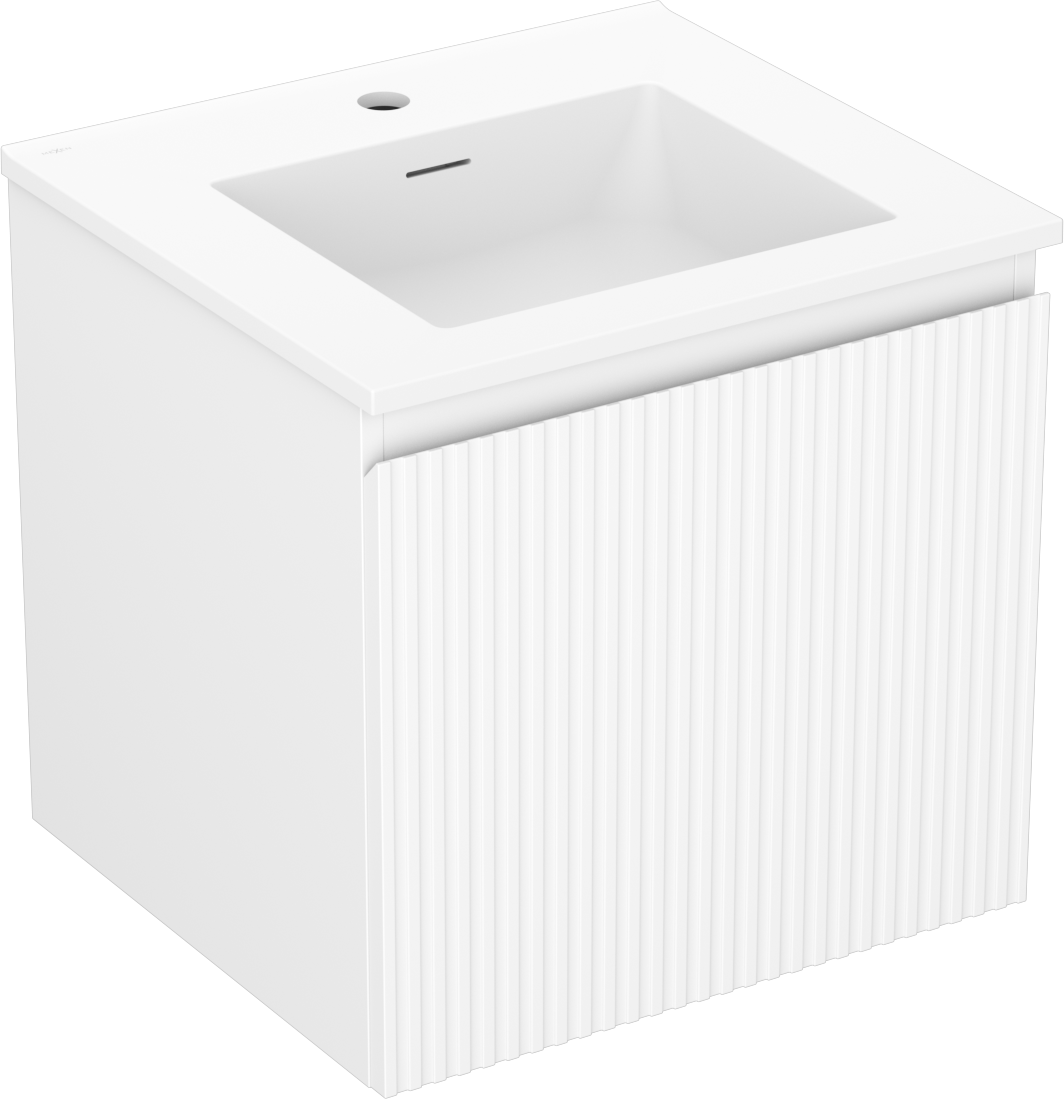 Mexen Rivel vonios kambario spintelė 50 cm su Otis kriaukle, 1 stalčius, grioveliais, balta matinė - 91A20-05047-1-BF01-W18M01