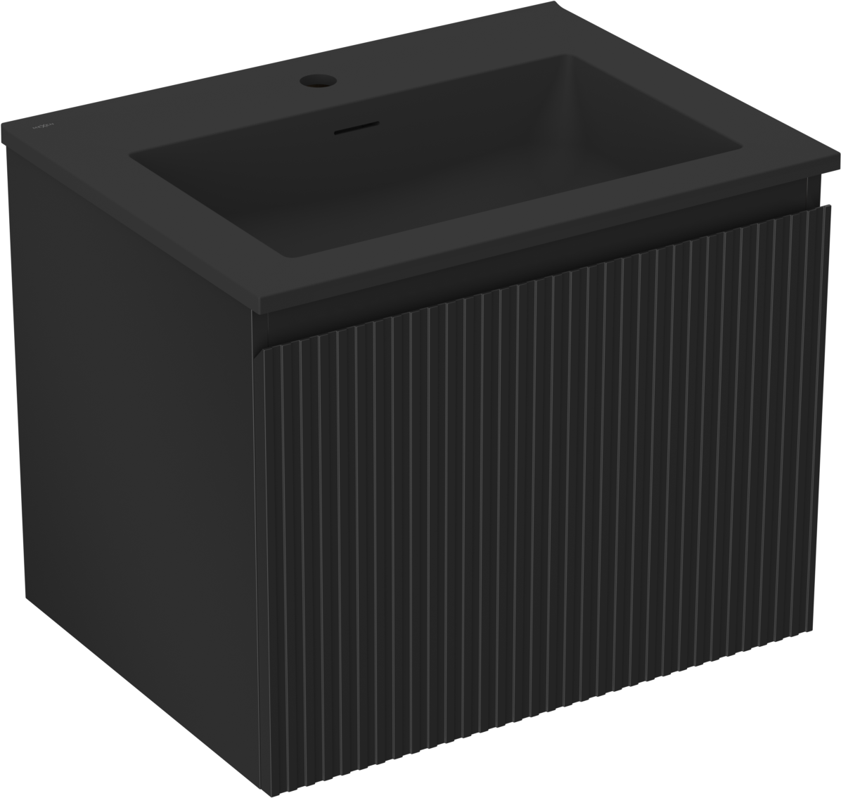 Mexen Rivel vonios spintelė Otis su praustuvu, 60 cm, 1 stalčius, rifliuota, juoda matinė - 91A20-06047-1-BF71-W18M71