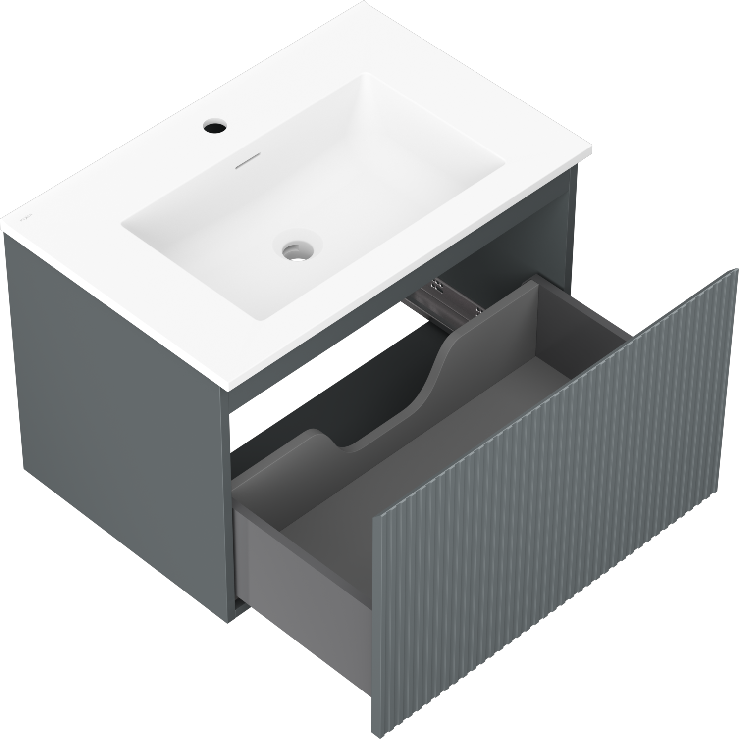 Mexen Rivel vonios spintelė 70 cm su Otis praustuvu, 1 stalčius, rifliuota, grafito matinė/balta matinė