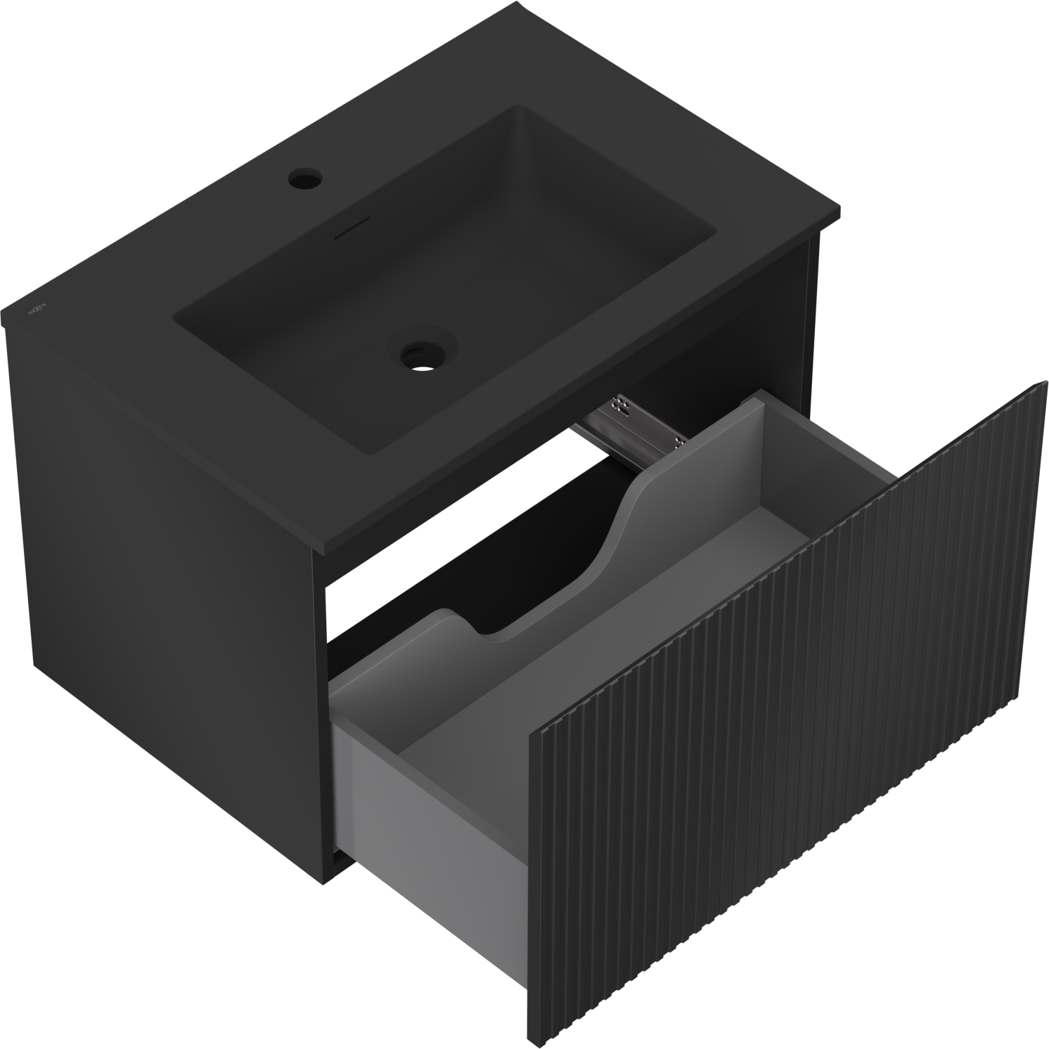 Mexen Rivel vonios spintelė 70 cm su Otis praustuvu, 1 stalčius, rifliuotas, juodas matinis - 91A20-07047-1-BF71-W18M71