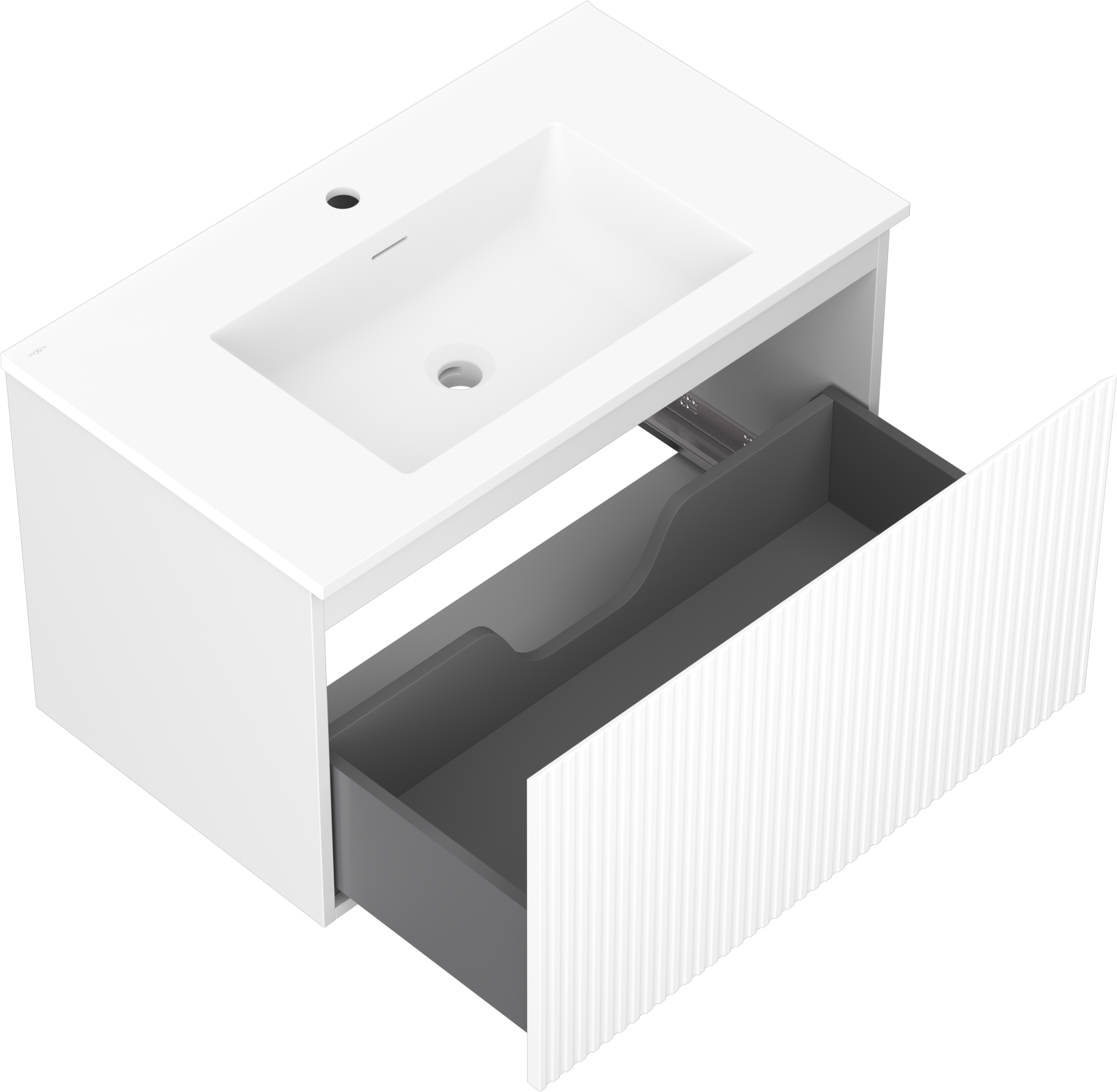 Mexen Rivel vonios spintelė 80 cm su praustuvu Otis, 1 stalčius, rifliuotas, baltas matinis - 91A20-08047-1-BF01-W18M01