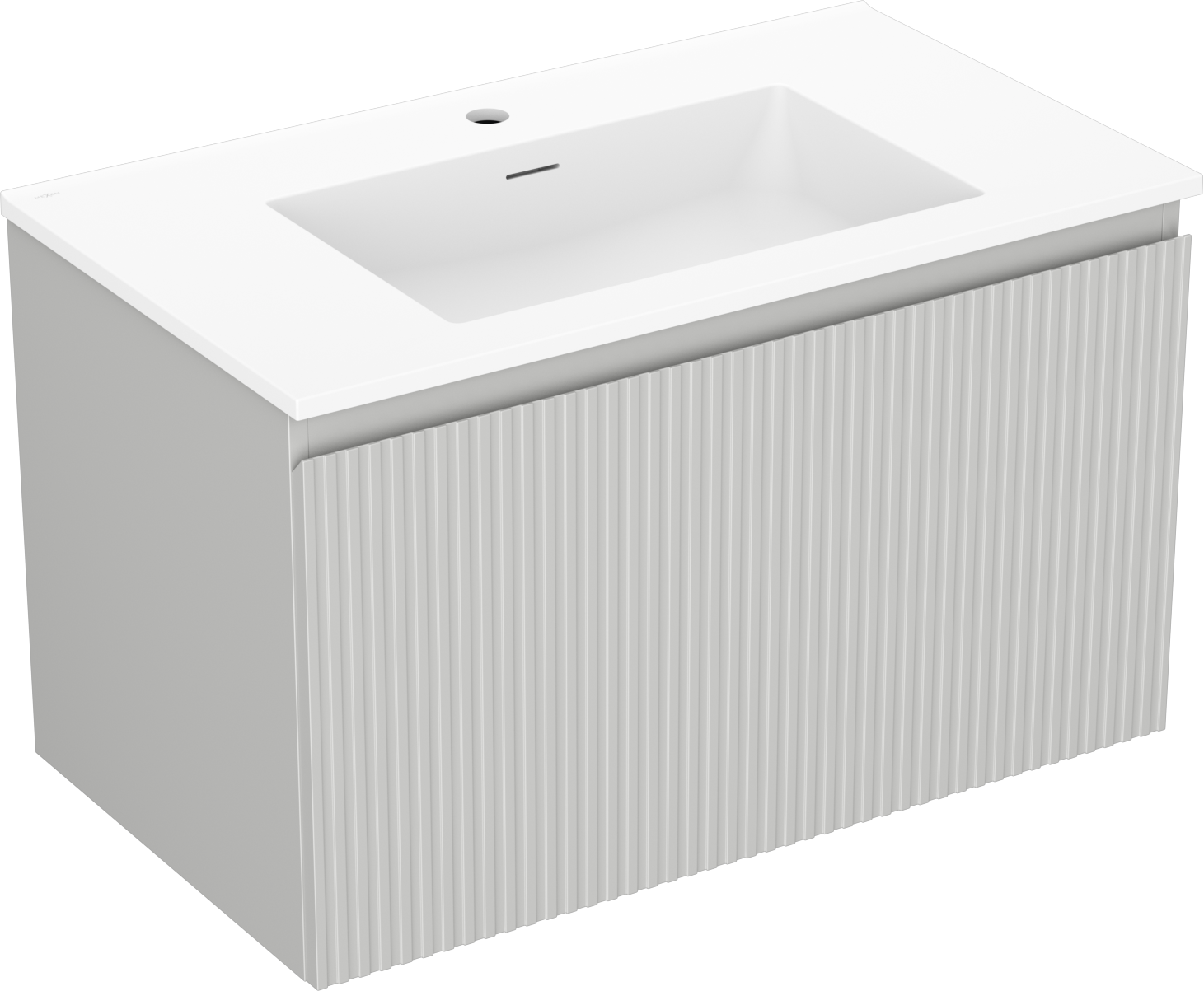 Mexen Rivel vonios spintelė 80 cm su kriaukle Otis, 1 stalčius, raižyta, pilka matinė/balta matinė - 91A20-08047-1-BF62-W18M01