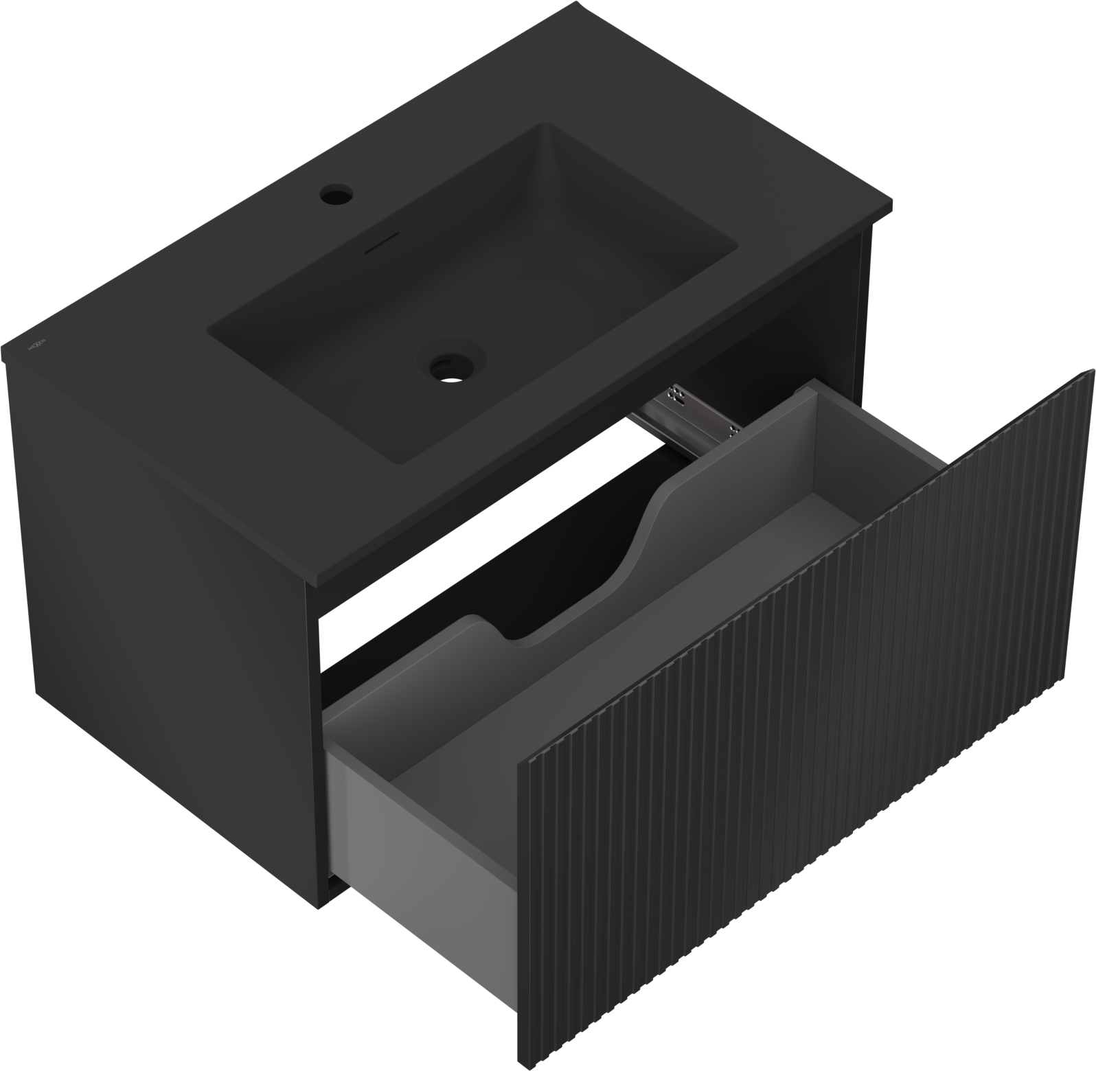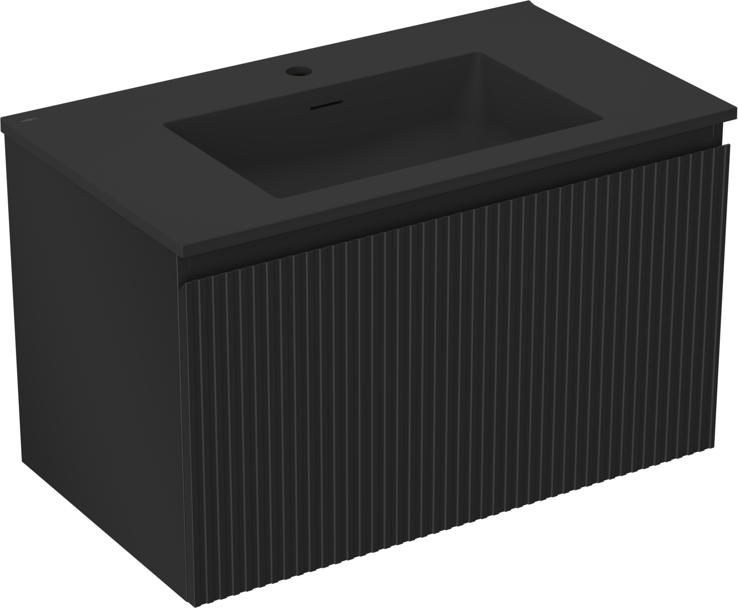 Mexen Rivel vonios kambario spintelė 80 cm su kriaukle Otis, 1 stalčius, rifliuota, juoda matinė - 91A20-08047-1-BF71-W18M71